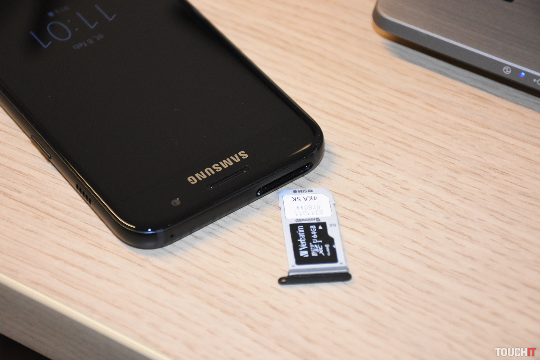 Slot na Nano SIM a microSDXC kartu je na hornej hrane. Na odobratie slotu treba použiť špeciálny nástroj, ktorý je pribalený. Je to jednak preto aby kryt pekne lícoval s telom. Po druhé aj preto, aby ste využili certifikáciu IP68 a teda mohli telefón ponoriť do 1,5 metrovej hĺbky na pol hodiny. Odolá aj múke a iných malým časticiam.
