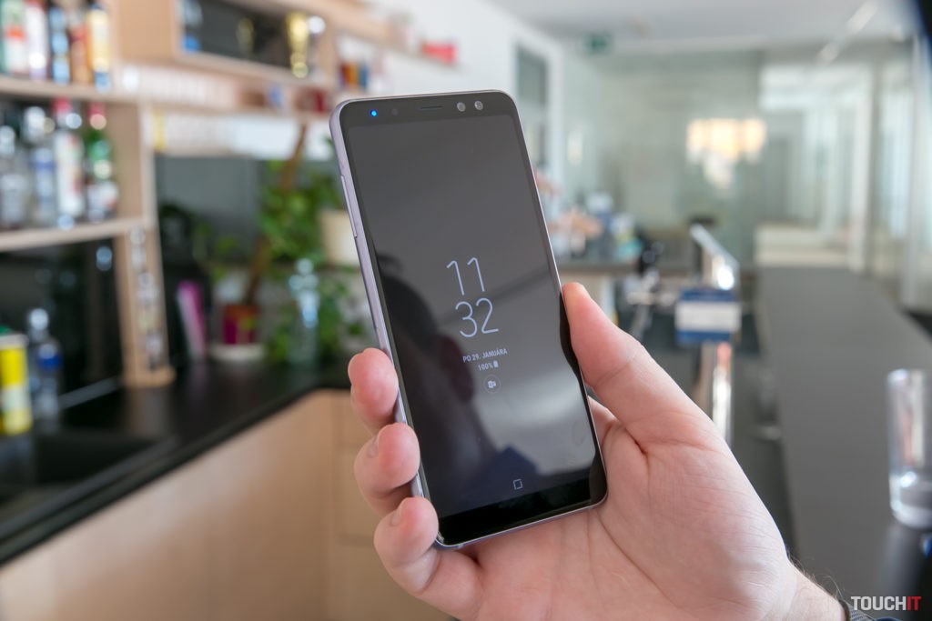 Kvalita displeja je výborná a vo svojej cenovej kategórii nemá Galaxy A8 v tomto smere konkurenciu. Poteší tiež podpora funkcie Always On Display, na vypnutej obrazovke vidíte všetky potrebné informácie, ako je aktuálny čas, dátum, zostávajúca kapacita batérie a notifikácie aplikácií. Je praktické, že Galaxy A8 ponúka okrem toho aj notifikačnú LED diódu. Tá je umiestnená v pravej časti rámika nad displejom. Chválime, že je pomerne veľká a svieti jasne – viacerými farbami. V nastaveniach si môžete zapnúť alebo vypnúť vždy zapnutý displej a aj LED diódu.
