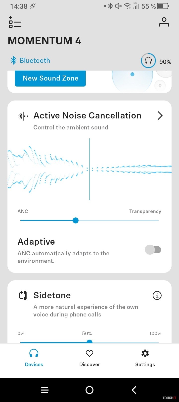 Samozrejmosťou v tejto cenovej kategórii je aj odhlučnenie od okolia, ktoré si môžete prispôsobiť. Na výber je nastavenie medzi silným odhlučnením a transparentným prejavom, napríklad pri nosení počas cestovania alebo na ulici. Je tu aj adaptívny režim, ktorý sa prispôsobí automaticky na základe prostredia. So slúchadlami sa dá aj telefonovať a tu využijete redukciu vetra a to buď na automatickom alebo maximálnom režime. Funkcia sa dá vypnúť. V rámci telefonovania máte ešte možnosť určiť si, ako veľmi budete počuť svoj vlastný hlas. Tiež prostredníctvom polohy prvku na jemné nastavenie.