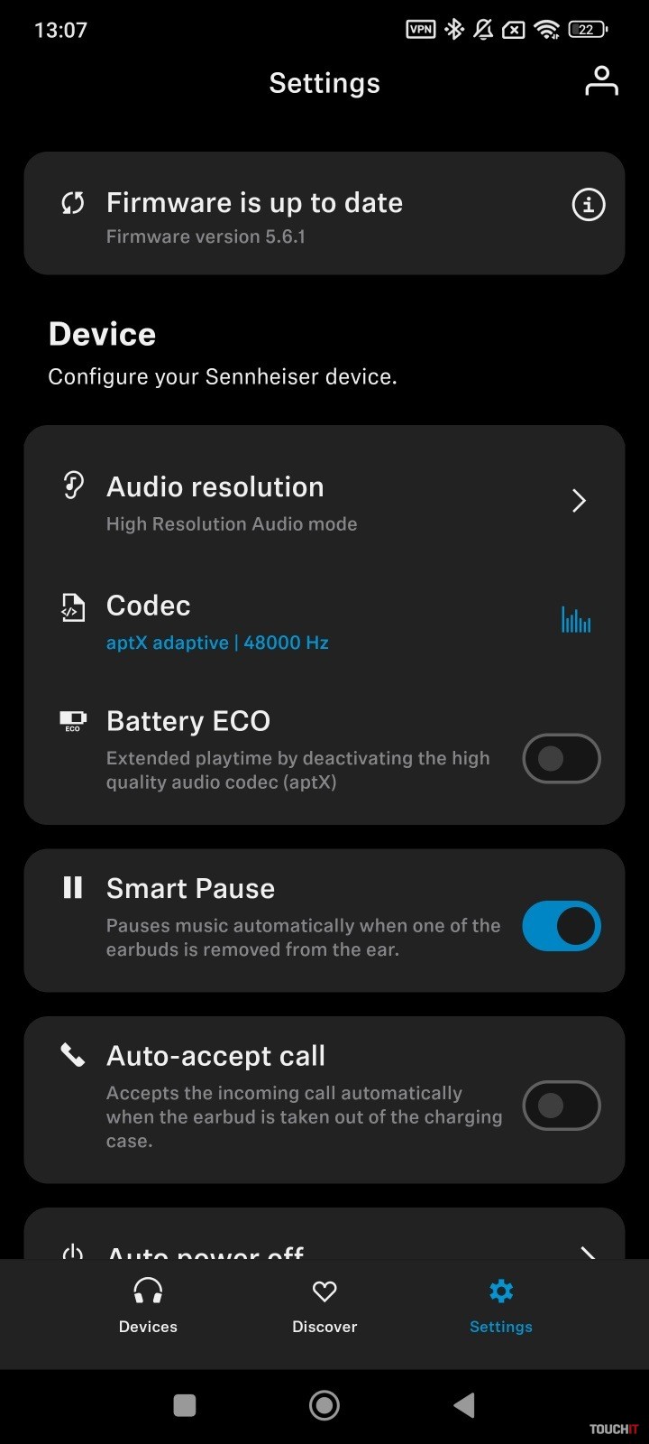 Prakticky nevyhnutnosťou v tejto cenovej kategórii je podpora kodekov s vysokým rozlíšením. Ide o aptX Adaptive a aptX Lossless a takisto podporu softvérovej aplikácie. Tá má široké možnosti nastavenia slúchadiel v oblasti zvuku, ovládania alebo napríklad automatického nastavenia režimu na základe vašej lokality.