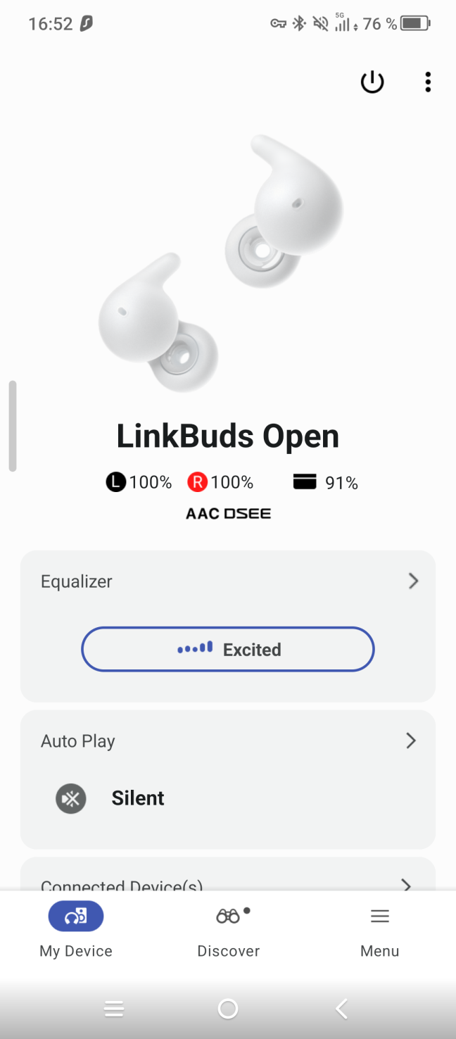 Funkciami sú veľmi podobné ako pri modeli LinkBuds Fit. Teda aj tu nájdete Background Music Effect na vytvorenie špeciálneho efektu ako by ste boli v kaviarni, malej miestnosti alebo obývačke a zvuk bol šírený ako podmaz.