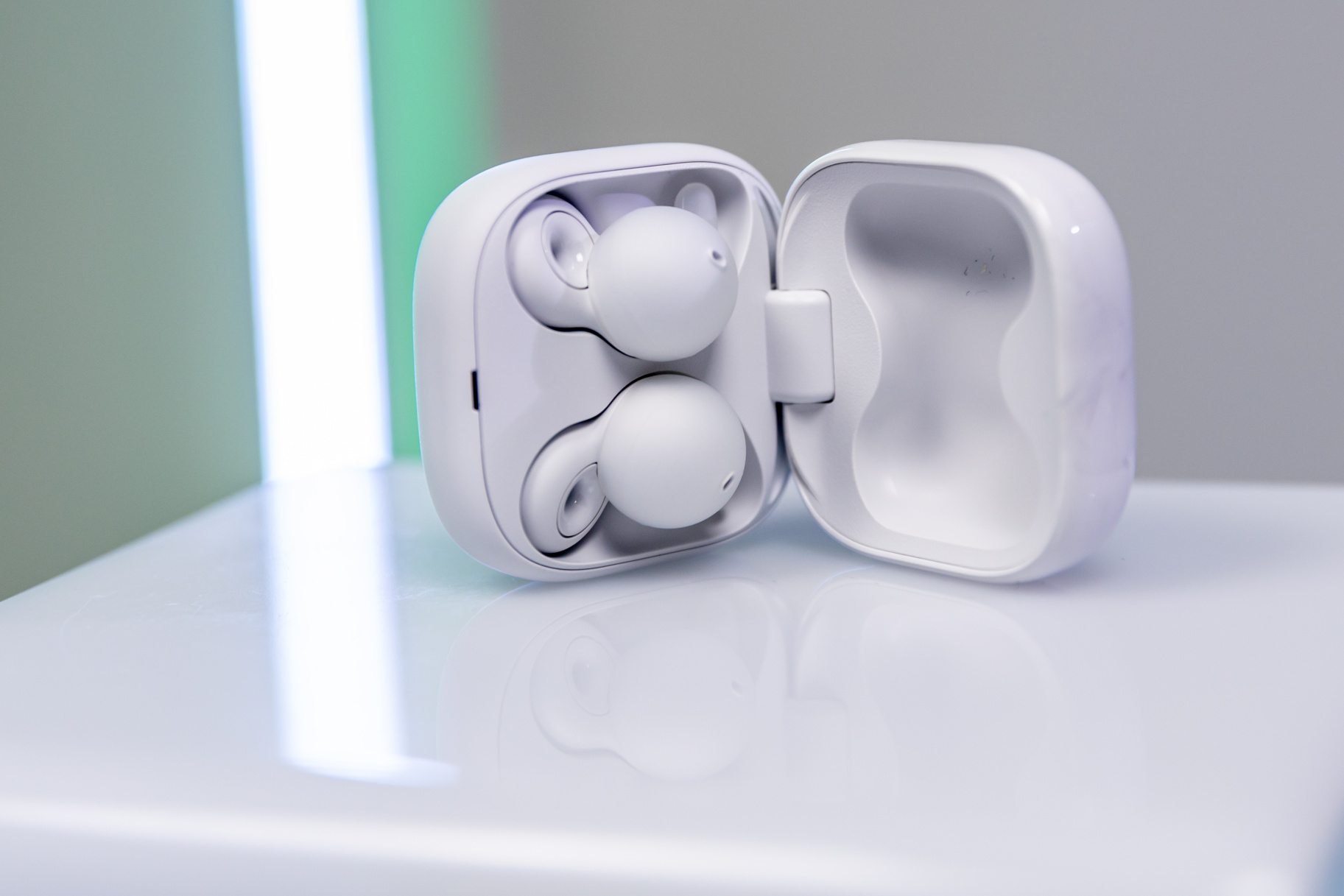 Sony LinkBuds Open majú miniatúrnu škatuľku a bude to to najmenšie na trhu, čo môžete nájsť. Majú kruhový dizajn a vkladáte ich do ucha spôsobom odlišným od in-ear slúchadiel. Dalo by sa povedať, že si ich len zachytíte o ucho a po vložení mierne pootočte tak, aby aretačná gumička držala stabilne v uchu.