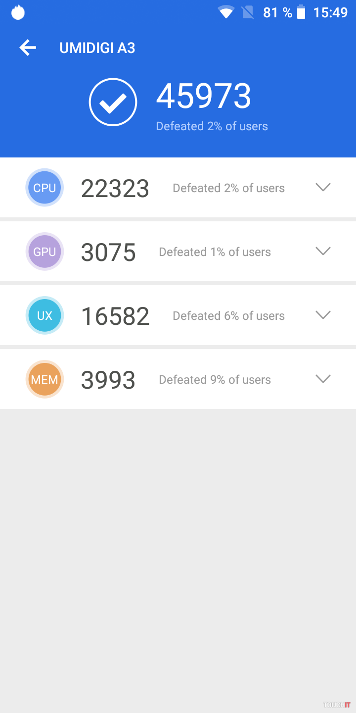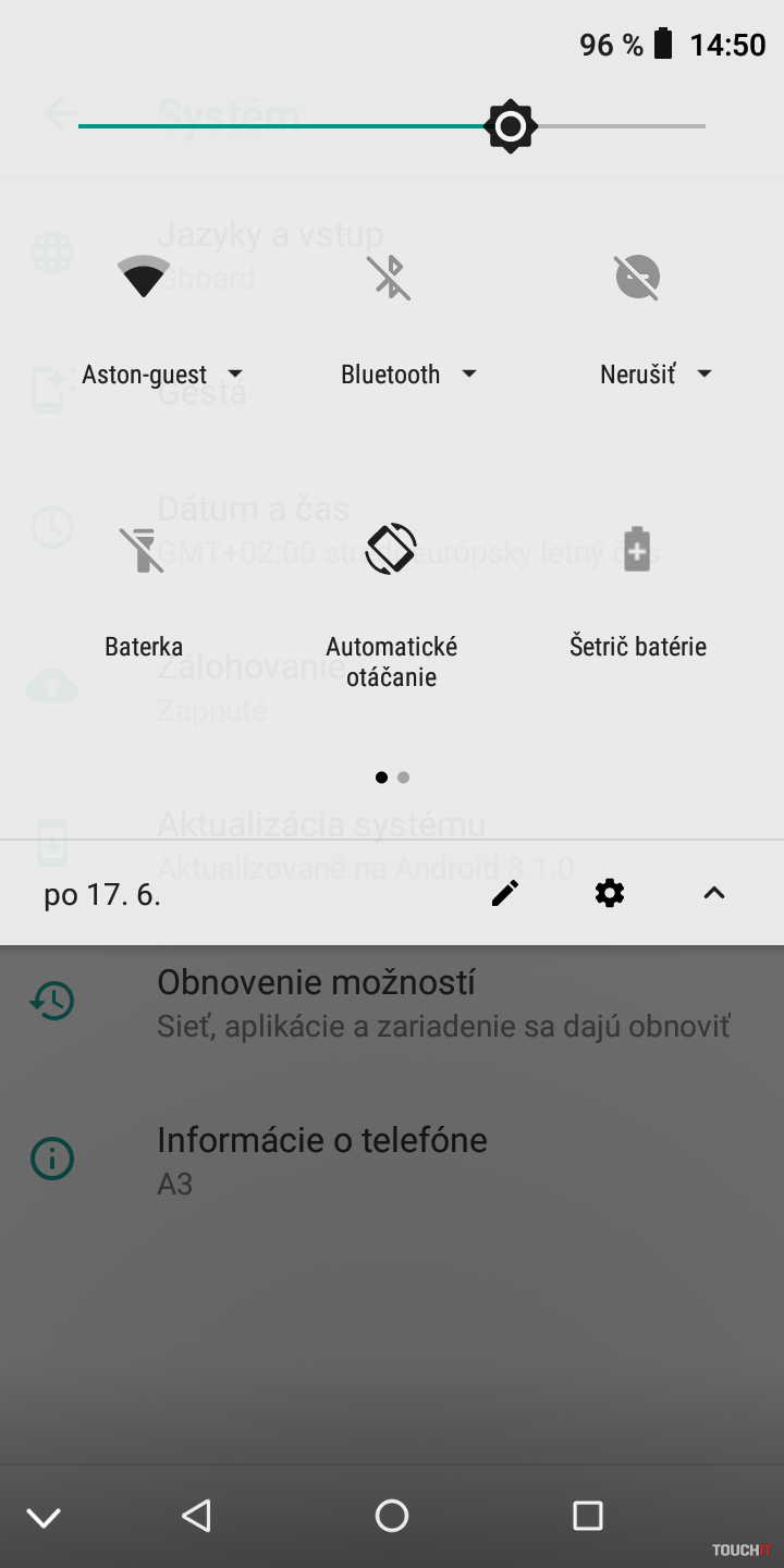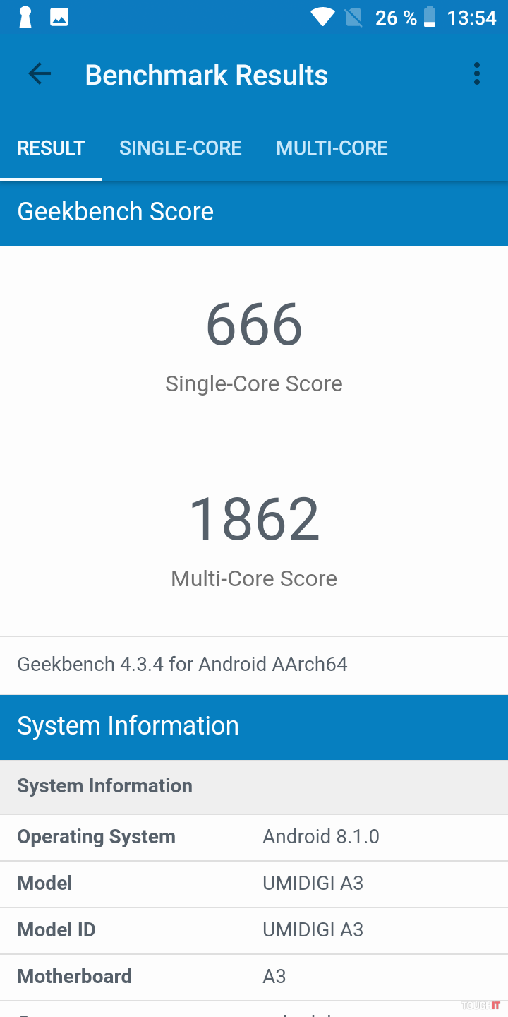 Celkovo je potrebné pri tomto smartfóne počítať s pomalšími reakciami, pričom o nejakom mrznutí systému nemôže byť reč. Jednoducho operácie trvajú dlhšie ako na konkurenčných zariadeniach a zariadeniach strednej alebo vyššej kategórie. Do softvérovej výbavy sa dostal Android 8.1 v čistej podobe, bez ďalších väčších úprav výrobcu. Umidigi A3 musíme dať mínusové hodnotenie za bezpečnostnú aktualizáciu, ktorá je z 5. októbra 2018. Aj keď má smartfón pomerne pomalé reakcie, možnosť ovládania pomocou gest funguje prekvapivo dobre a počas testovania sme používali výhradne iba to.
