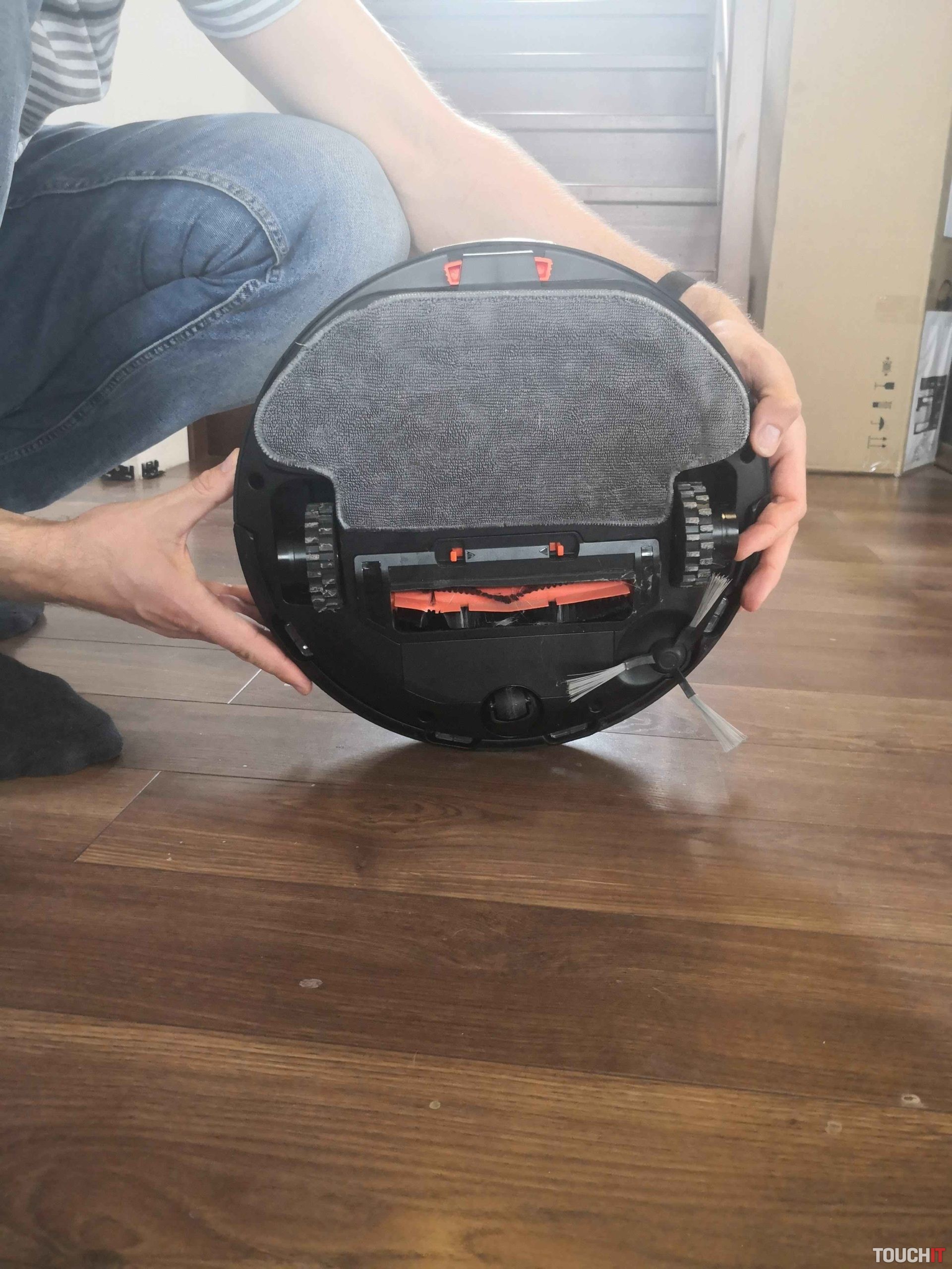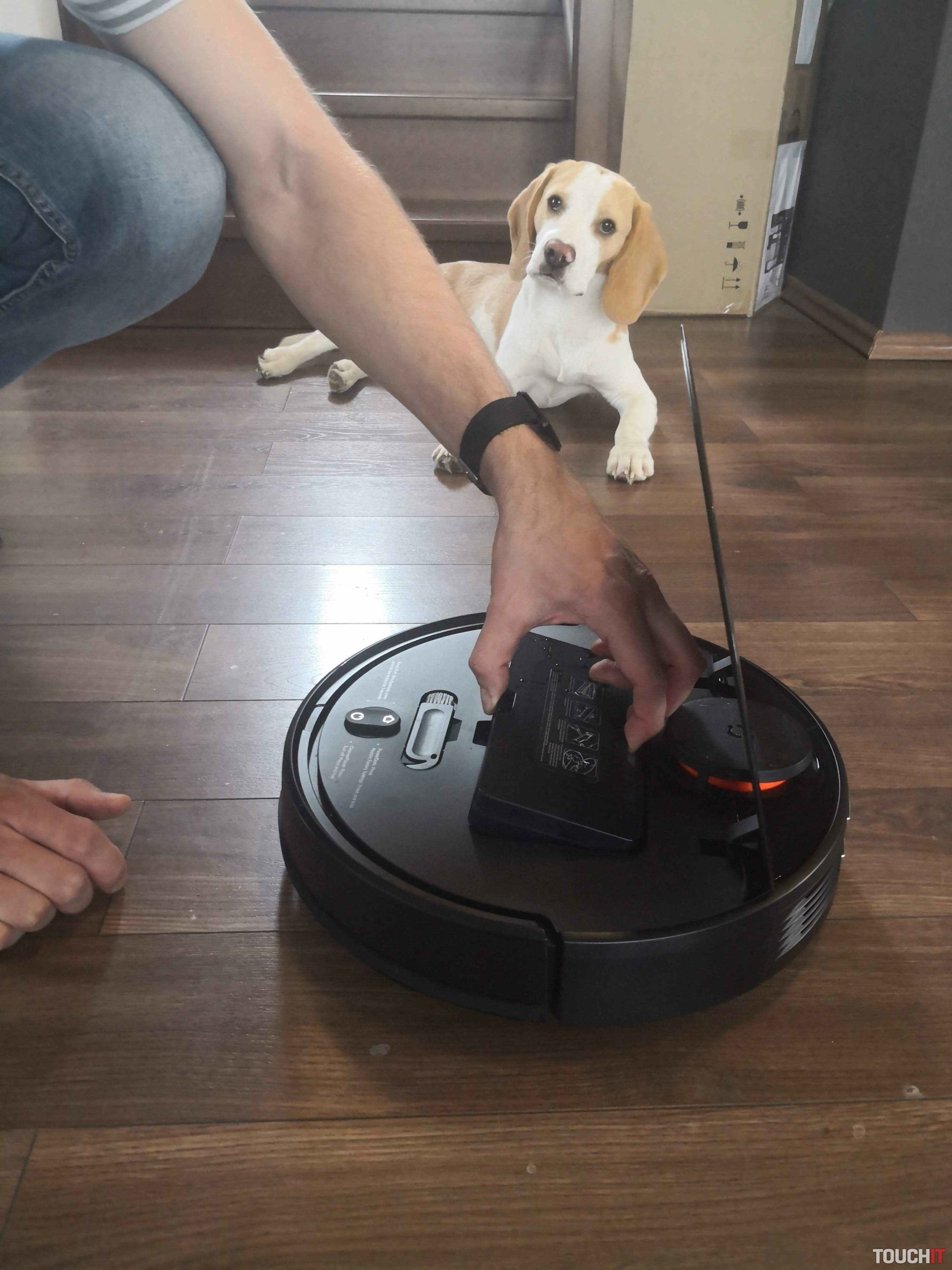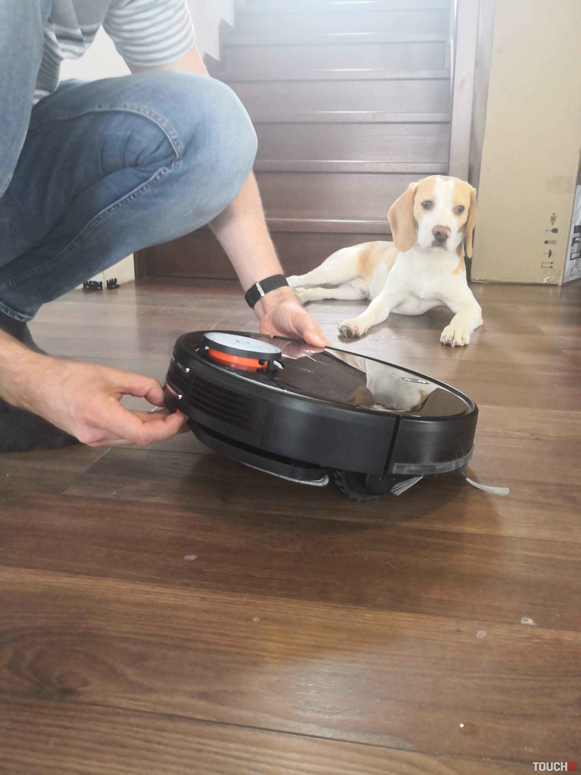 V našom teste sme pravidelne upratovali domácnosť s rozlohou 48 m2 v ktorej žije pes a dvaja ľudia. Priestor sme predtým dva dni neupratovali, aby sme dokázali vyhodnotiť mieru efektivity upratovania a umývania. V celom dome sú laminátové podlahy v kombinácii s kamennou dlažbou a jeden koberec s nízkym vlasom. Vysávač sme používali vždy v kombinovanom režime s mopovaním, hoci mop prechádzal aj po koberci. Toto však odporúčame používateľom nastaviť v aplikácii, pretože ak by ste pravidelne nechali mop chodiť aj po koberci, postupne by bol koberec znečistený, hoci u nás sa to po pár čisteniach neprejavilo. Pri najslabšom sacom výkone boli výsledky vysávania veľmi uspokojivé, pričom aj hlučnosť vysávača bola nízka. Bolo možné počas procesu napríklad pozerať televízor. Mopovanie však prvýkrát nebolo optimálne, veľké zaschnuté škvrny napríklad od kečupu v kuchyni mopovač neodstráni. Je to pochopiteľné a počíta sa s tým, že zariadenie bude upratovať pravidelne a iba mierne znečistené podlahy. Pravidelné vysávanie a umývanie každý druhý deň je na podlahe naozaj vidno a nerozoznáte výsledok. Bude veľmi podobný tomu, ako keď si povysávate a umyjete samy. Možno lepší.