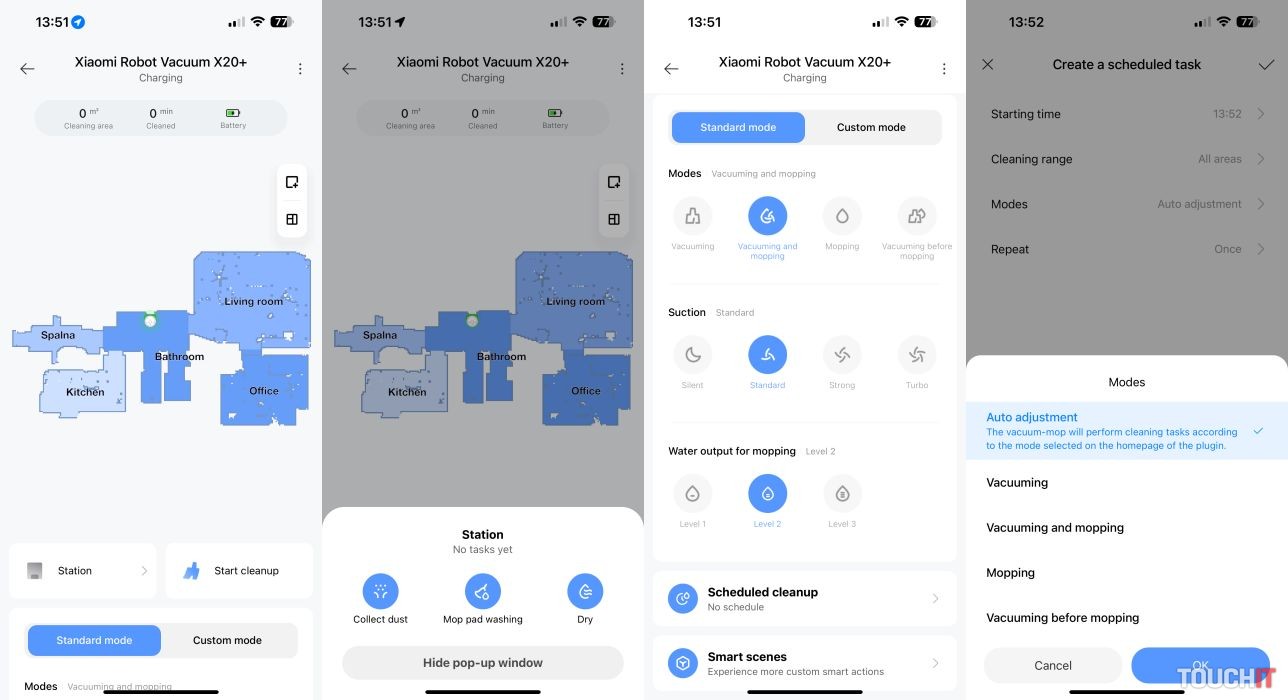 Keď som testoval X10+, kritizoval som niektoré veci, ako je fakt, že si nemôžete nastaviť režim upratovania v prípade harmonogramu upratovania, ktorý si vytvoríte cez mobilnú aplikáciu. Neviem, či sa to medzičasom zmenilo, keďže som model X10+ po otestovaní vrátil. X20+ však ponúka v tomto smere oveľa viac možností.