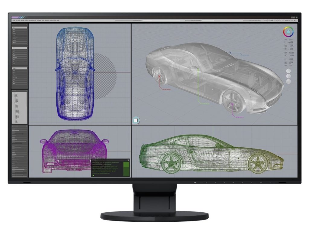 Monitor pôsobí na prvý pohľad konzervatívne, avšak na druhý pohľad si všimnete ultratenké rámiky okolo obrazovky, a to zo všetkých štyroch strán. Štandardom je, že dnešné monitory majú tenké rámiky na troch stranách, avšak EIZO dokázalo tento dizajn ešte vylepšiť. Ultratenký je aj rámik pod displejom a pod ním sa nachádza minimalistický panel s ovládacími prvkami a senzorom okolitého osvetlenia.