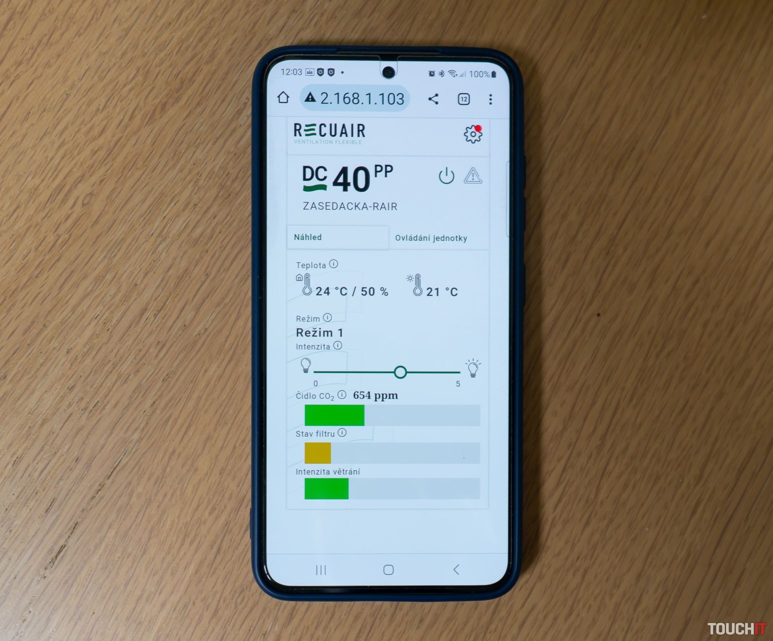 Mobilná aplikácia umožňuje napr. nastaviť intenzitu vetrania či režimu práce. Jednotka DC-40 má samozrejme pripojenie na sieť Wi-Fi. Takto sa dá napr. aj aktualizovať softvér v jednotke.