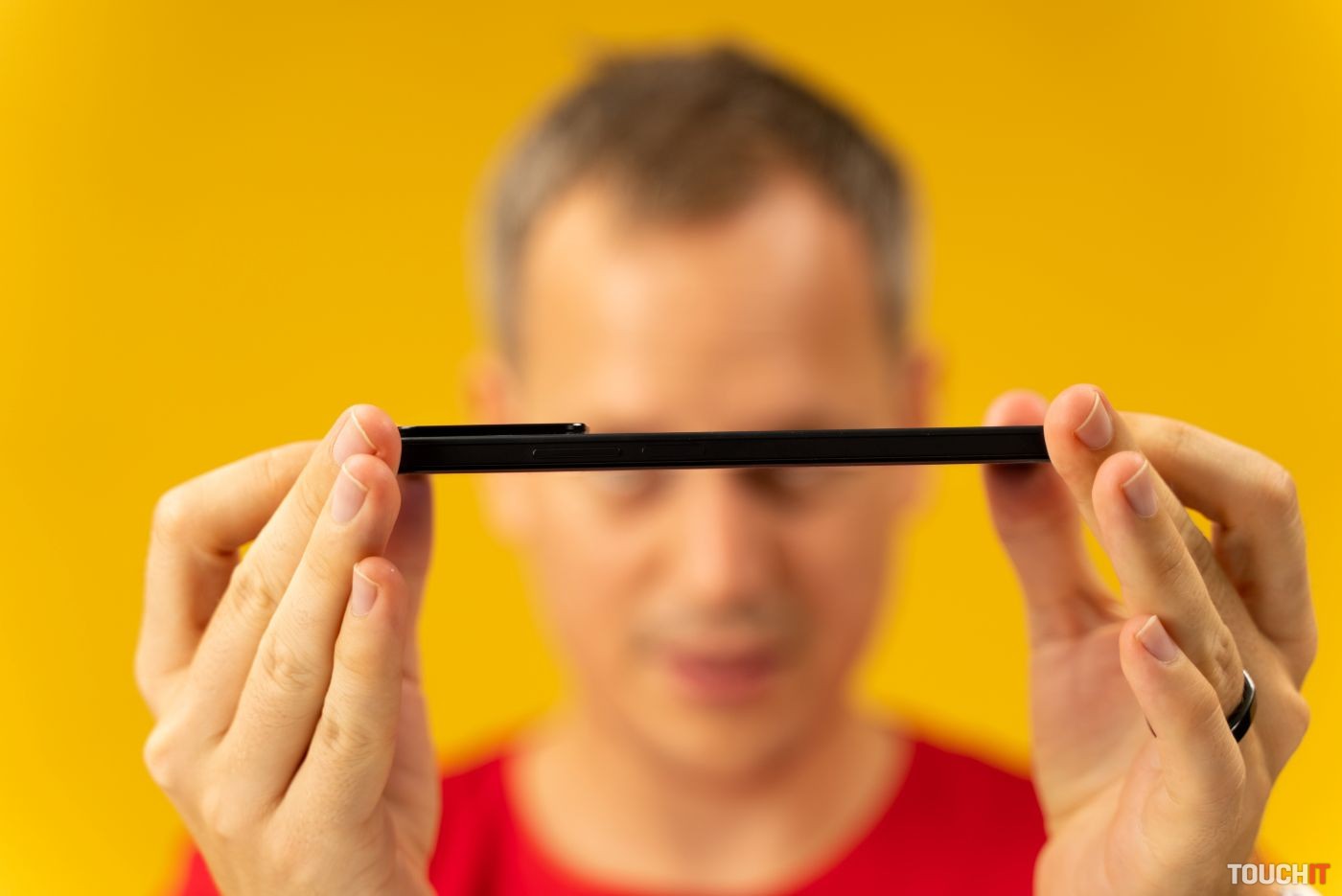 Redmi Note 11 Pro+ 5G má plastové hranaté hrany. Chrbát je zo skla, displej chráni Corning Gorilla Glass 5. Chýba zaoblenie prednej či zadnej strany, čo je vlastnosť, ktorá môže v niektorých prípadoch zlepšiť ergonómiu. V tomto prípade ju však nečakajte. Pokiaľ máte väčšie dlane, nebude to problém.