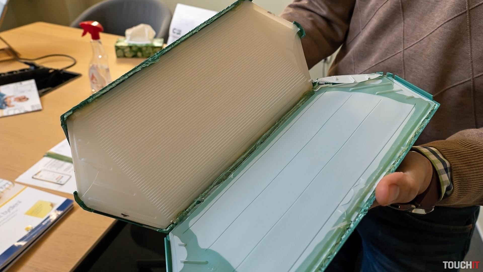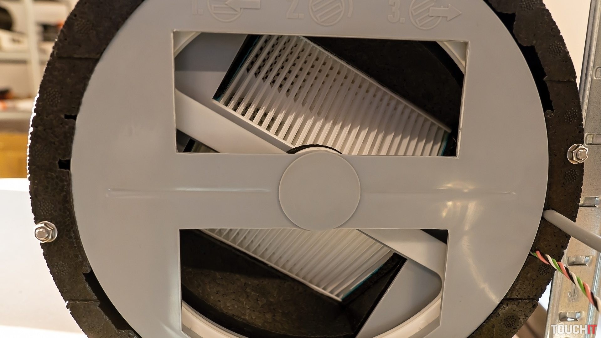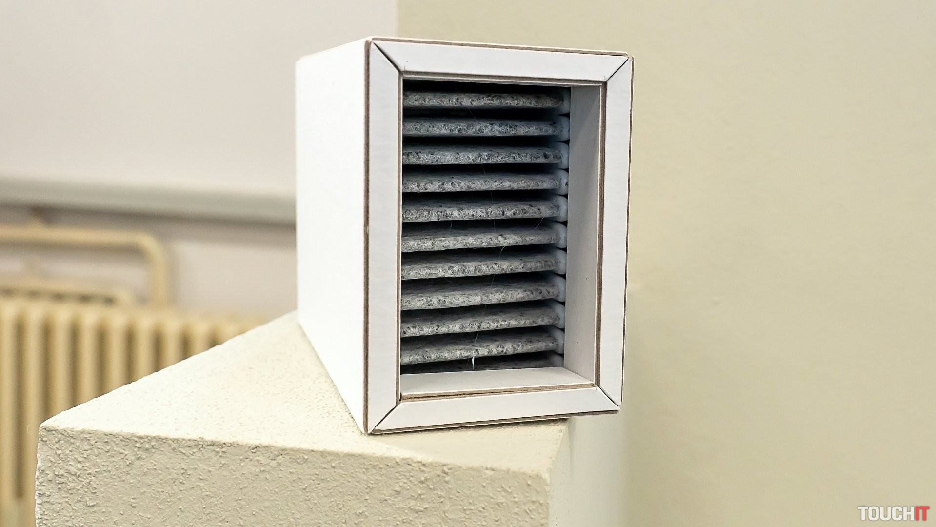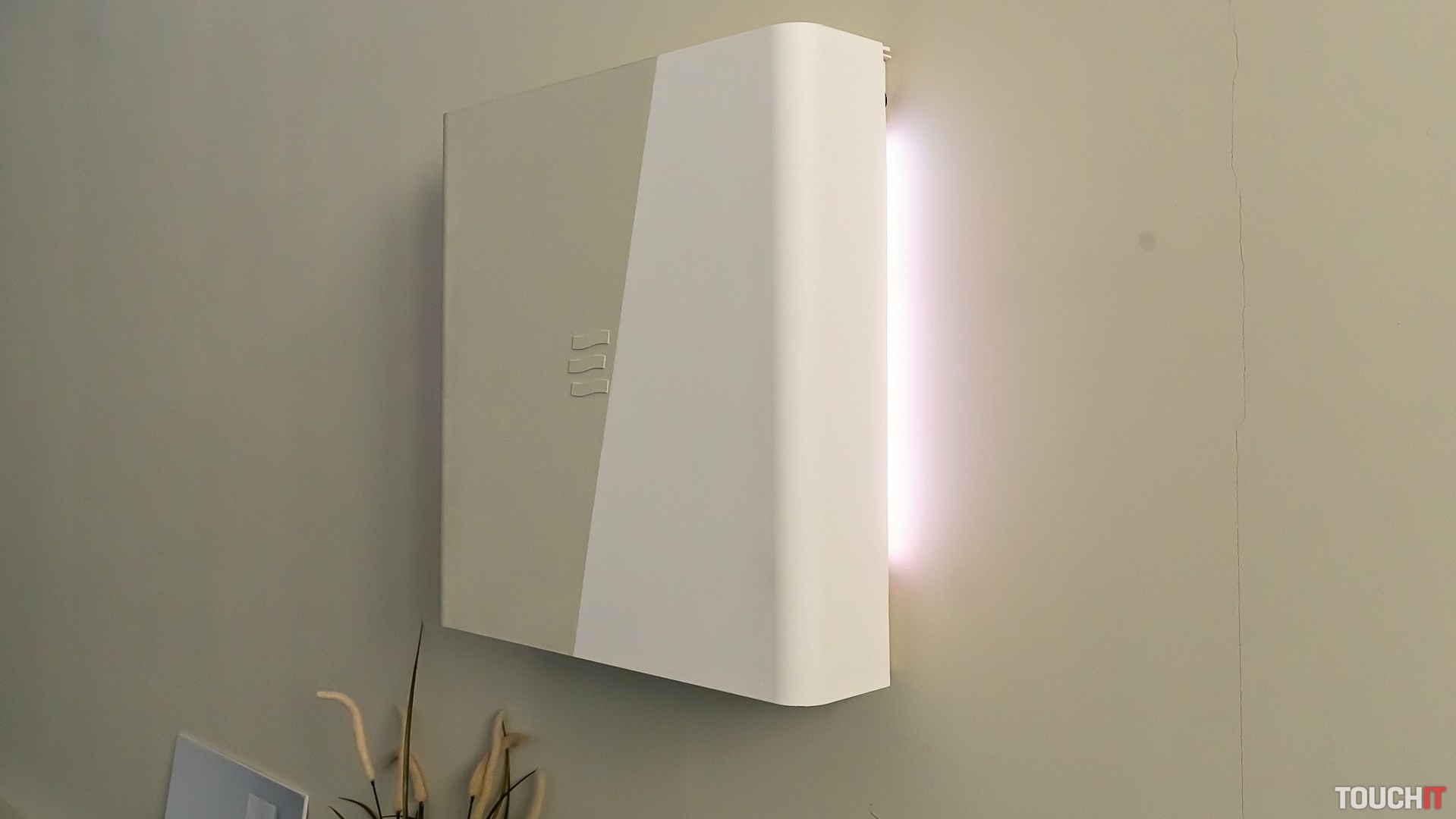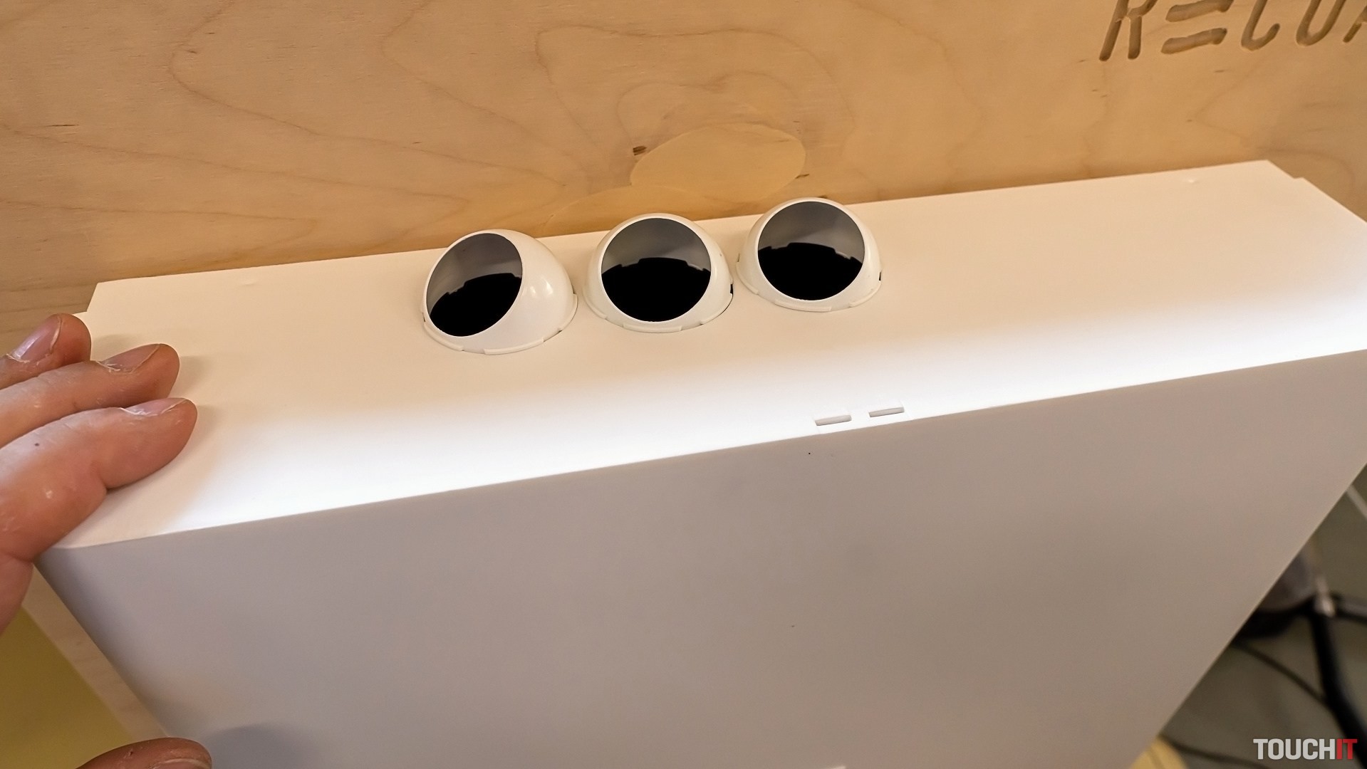 Všetko vŕtanie a aj následná montáž sa realizuje čisto zvnútra. To je výhodné pre panelové byty, lebo nie je potrebné stavať lešenie. Po osadení celej jednotky vidíte len jej plastovú časť, ktorá má otvor pre filtračnú vložku a tiež je dostupné ambientné podsvietenie.