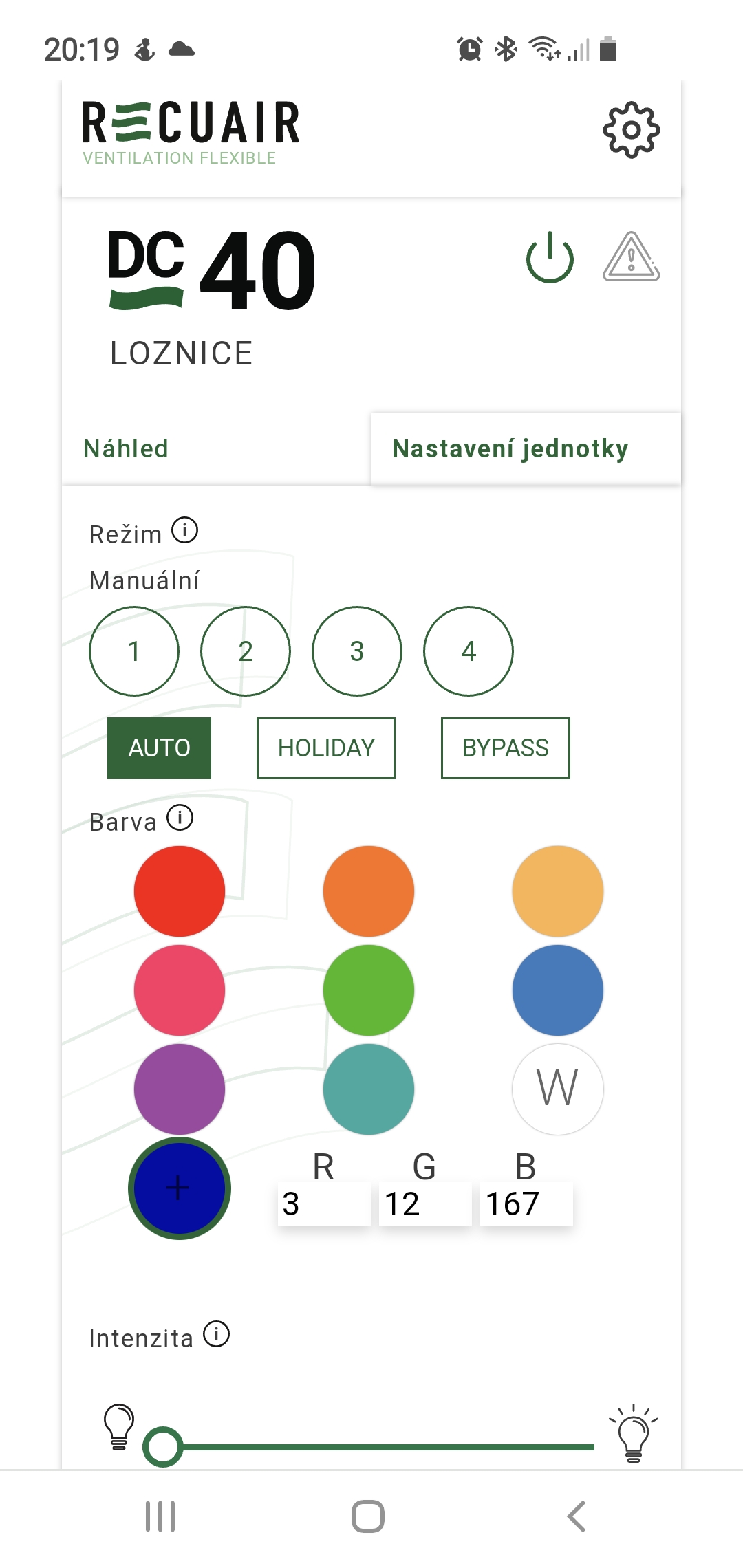 K systému je k dispozícii mobilná aplikácia pre iOS a Android, ktorá vám pomôže jednotku na WiFi nájsť a pripojiť sa k nej. Získate tým informácie o stave filtra, môžete s ňou nastaviť ambientné podsvietenie, prípadne režim práce (Auto, Dovolenka, Bypass) aj informácie o nameraných hodnotách. Označenie aplikácie je Recuair Ventilation remote WiFi control. Hluk samotnej jednotky pri prevádzke je max. 25 dB, teda ho sotva budete počuť.