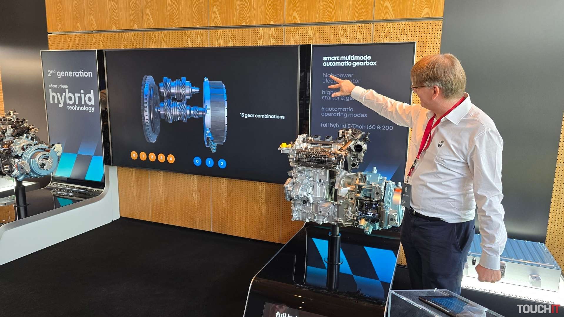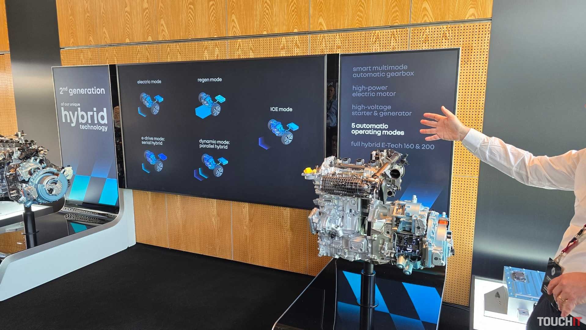 Full Hybrid E-Tech kombinuje spaľovací motor s dvoma elektromotormi, batériu a inteligentnú multimodálnu bezspojkovú prevodovku typu „dogbox“.