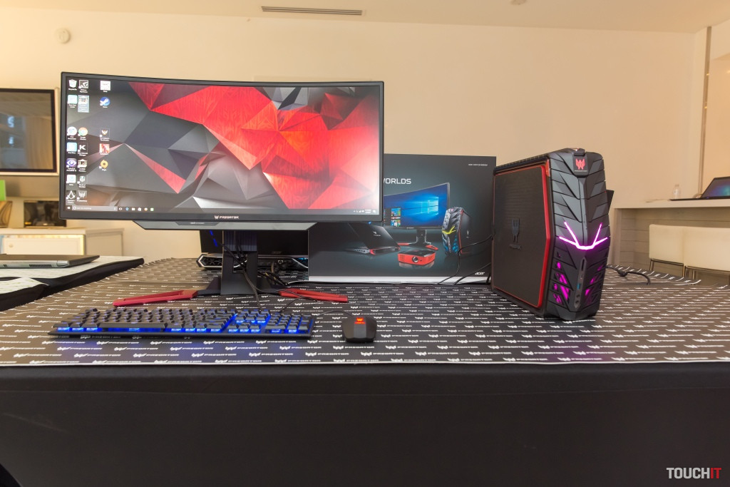 Pre hráčov, ktorí si hry radšej užijú na stolnom počítači, pripravil Acer novinky vo vyhotovení Aspire GX. Je pomere tenký, ľahko sa s ním manipuluje a prenáša na iné miesto. Má podobné parametre ako notebook Aspire VX 15 a cena je od 849 eur. Acer k tomu uviedol aj výborný herný monitor AcerPredator Z301CT. Je to prvý zakrivený monitor s pomerom strán 21:9 a funkciou eye-tracking na ovládanie hier pomocou pohybu očí. Má uhlopriečku až 30 palcov a jeho cena štartuje na 919 eur.