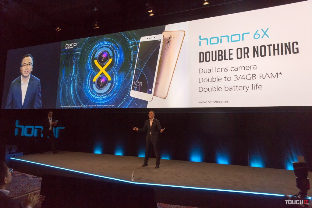 Druhou veľkou akciou počas prvého novinárskeho dňa bolo predstavenie telefónu Honor 6X, a to v hoteli Mandalay Bay. Minuloročný „telefón veľtrhu“, Honor 5X tak o rok dostal svojho nástupcu, ktorý prišiel s názvom Double or Nothing – voči minulosti sú tak niektoré parametre zdvojnásobené. Tento telefón sa vyznačuje ergonomicky tvarovaným kovovým telom a 5,5“ Full HD displejom s rozlíšením 1920 x 1080 bodov. Okrem 2,5D zakriveného displeja dodávajú telefónu elegantný vzhľad aj zaoblené rohy. Smartfón poháňa osemjadrový procesor Kirin 655 od Huawei.