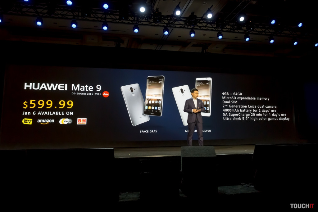 Veľká chvíľa pre Huawei – CEO Richard Yu predstavuje Mate 9 v americkej verzii a za sebou má velikánov IT