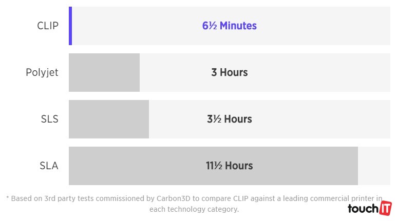 Spoločnosť Carbon3D ukázala revolučné riešenie 3D tlače. Na konferencii TED2015 prezentovala technológiu, ktorá je 25 až 100-násobne rýchlejšia v porovnaní s existujúcimi metódami. Nazýva sa Continuous Liquid Interface Production (CLIP) a jej princíp spočíva vo využití vlastností svetla, kyslíka a fotosenzitívnej tekutej živice.