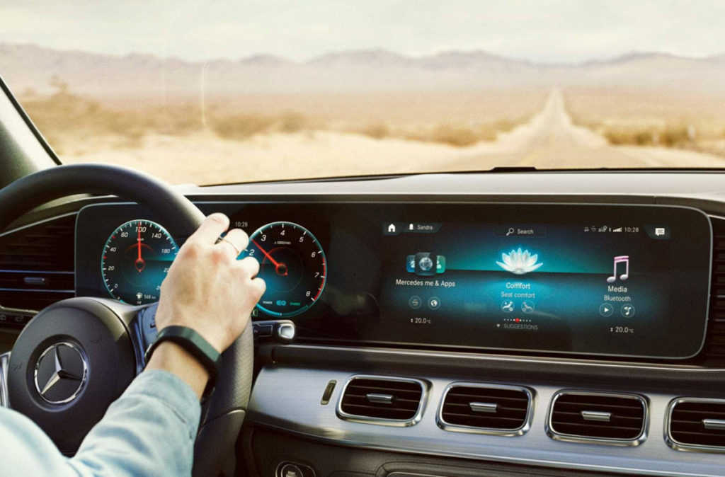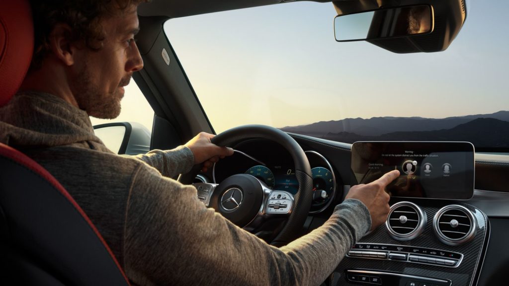 Poďte s nami do moderného sveta auto dotyku. V hornej časti displeja si môžete prečítať varovanie, aby ste sa nenechali displejom rozptýliť. Ako vtip každopádne dobré. /Foto: Mercedes/