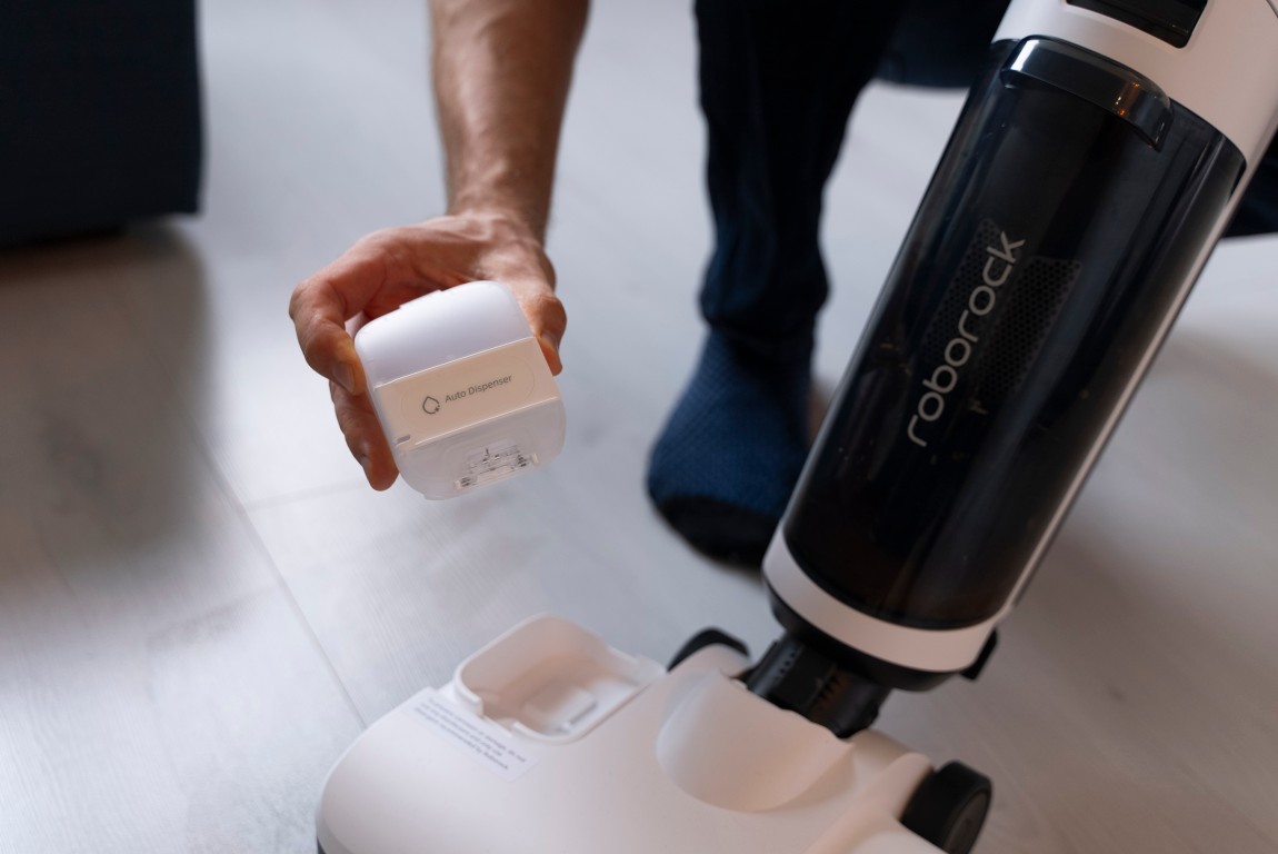 Vychytávkou tohto modelu je aj čistiaci prostriedok. Pri doterajších mopovačoch výrobcovia zakazovali používať čistiace prostriedky a mopovať sa dalo iba čistou vodou. Roborock Dyad Pro Combo má však v hornej časti mopovacej hlavice zásobník na čistiaci prostriedok. Nemali by ste v ňom používať hocijaké čistiace prostriedky, ale iba tie, ktoré odporúča výrobca. Rôzne dezinfekčné prostriedky by mohli spôsobiť koróziu a poškodenie zariadenia.