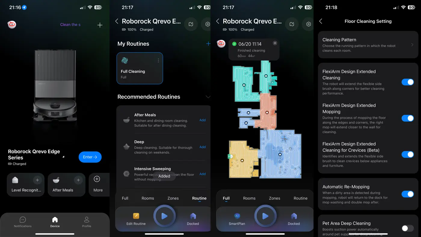 Podobne ako ostatné vysávače značky Roborock, aj Qrevo Edge 5v1 ponúka režimy samostatného vysávania, mopovania a režim kombinovaného vysávania aj mopovania. K dispozícii je aj režim, keď vysávač najskôr vysáva a až potom mopuje.