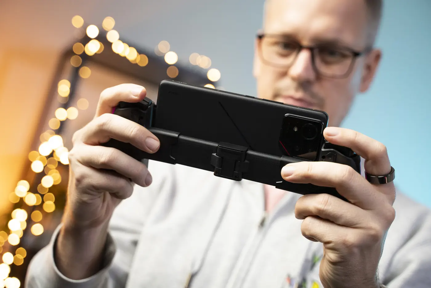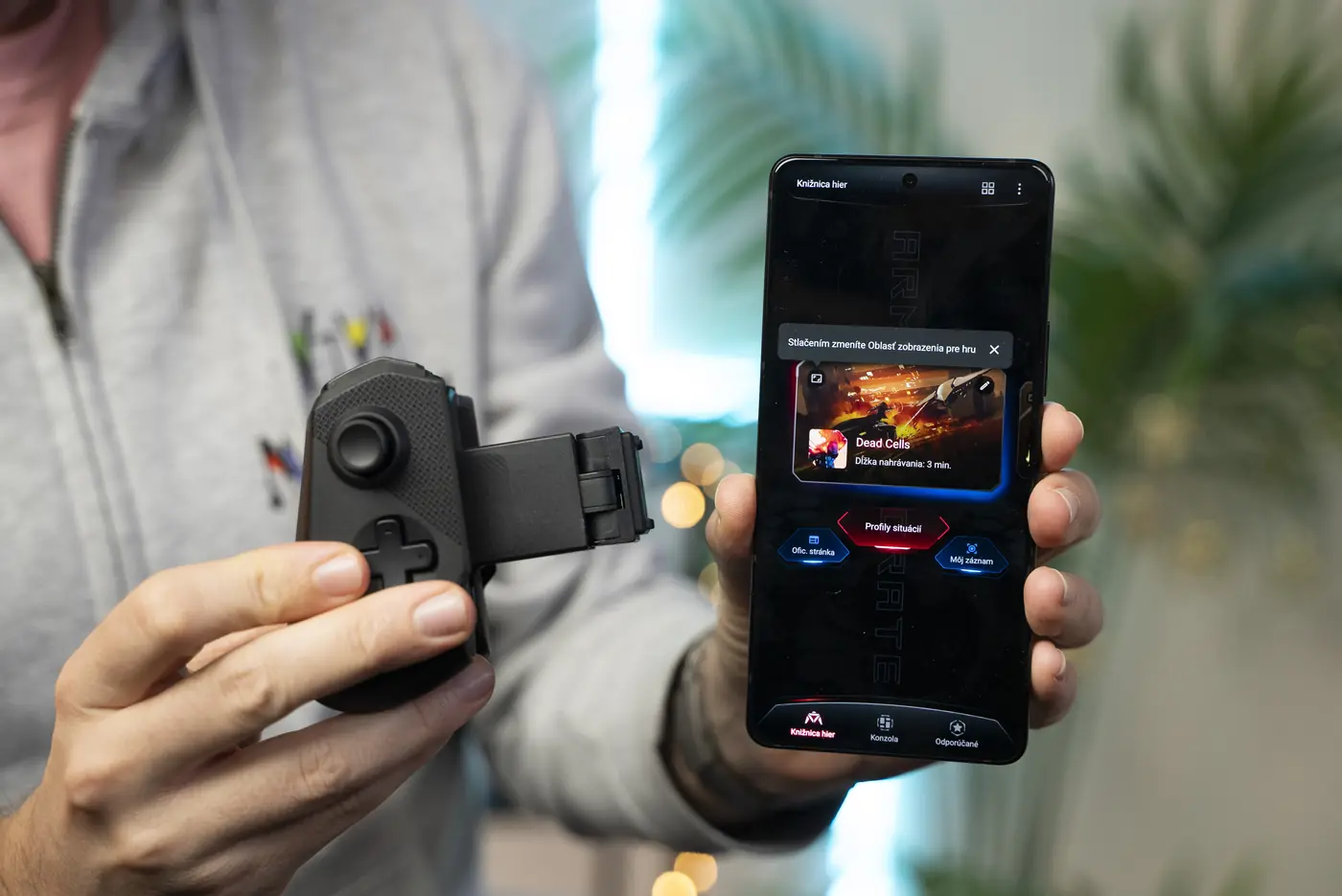 ROG ponúka aj gamepad ROG Tessen, ktorý chválim za nízku hmotnosť a kompaktné spracovanie. Gamepad je možné zložiť na polovicu, vďaka čomu zaberá menej miesta počas prenášania. Jeho spracovanie a zážitok z hrania je prvotriedny a patrí k tomu najlepšiemu, s čím som sa doteraz stretol. ROG Tessen funguje aj s inými Android telefónmi, avšak s iPhonom si nerozumie.