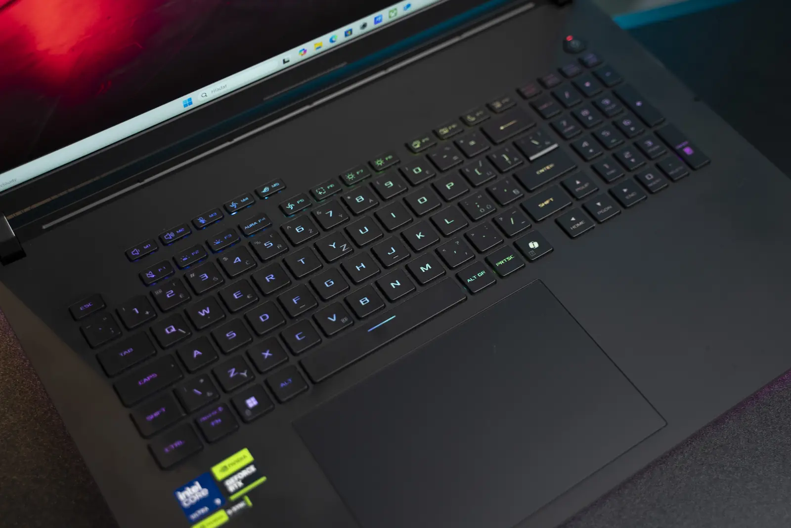 Klávesnica notebooku je podsvietená a ponúka numerickú časť. Vhodná je nielen na hranie, keďže spätnú väzbu klávesov som si okamžite obľúbil aj počas písania. Pracuje sa na nej pohodlne. Touchpad výraznejšie neprekvapí. Ide o štandard v segmente prémiových notebookov. Haptickú spätnú väzbu nemá.