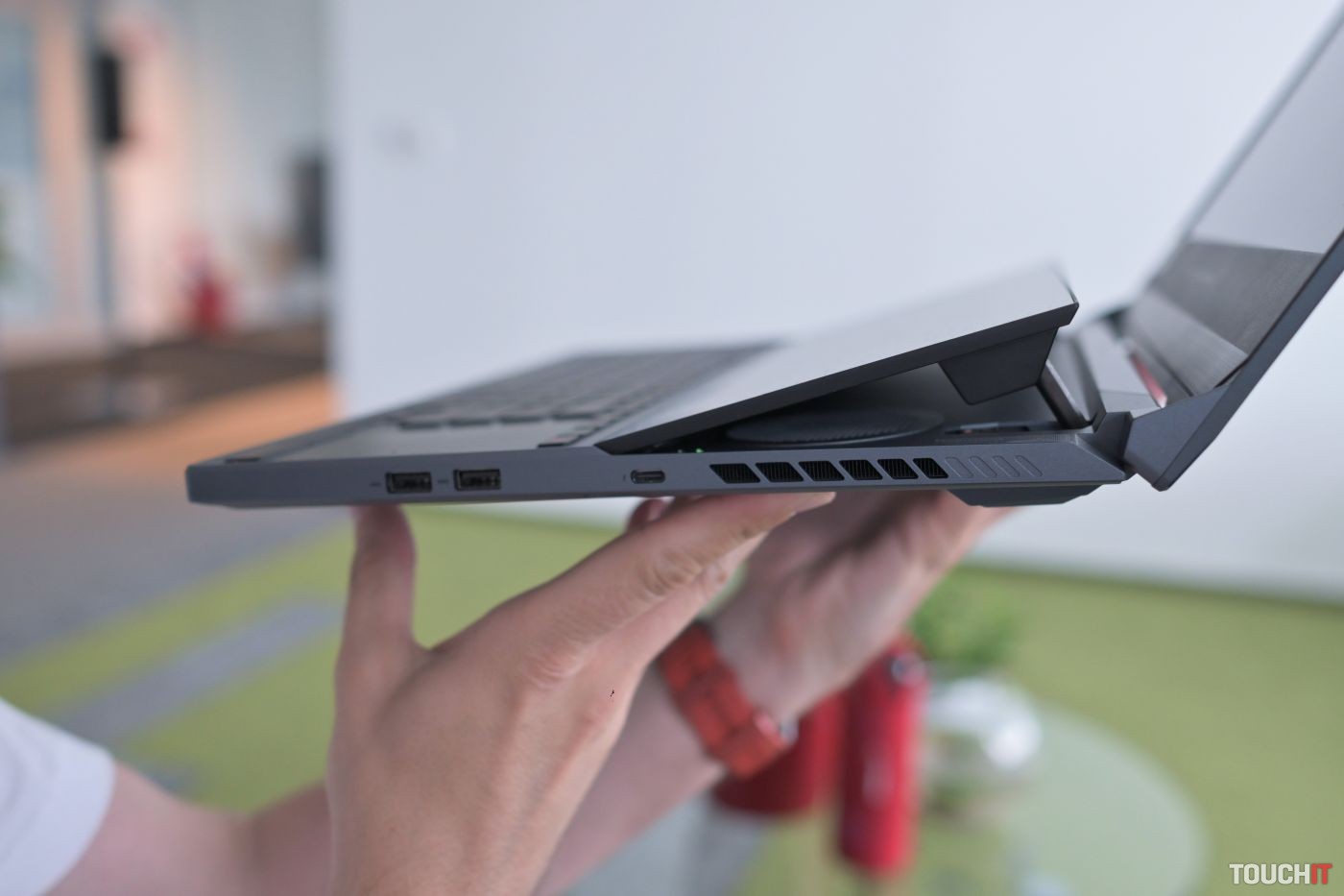 Druhý displej nás zaujal aj svojim dizajnom. Pri otváraní veka notebooku sa druhá obrazovka automaticky nadvihne pod 13° uhlom pre pohodlnejšie pozeranie a lepší prieduch vzduchu. Ako sa to prejaví na teplotách komponentov zistíme počas testovania a tento údaj prinesieme v recenzii. ROG Zephyrus Duo 15 GX550 má vo výbave bohatú portovú výbavu a podporuje nabíjanie cez USB-C. Súčasťou balenia sú dva adaptéry. Jeden si môžete nechať doma, USB-C adaptér si môžete so sebou nosiť na cesty.ROG Zephyrus Duo 15 GX550