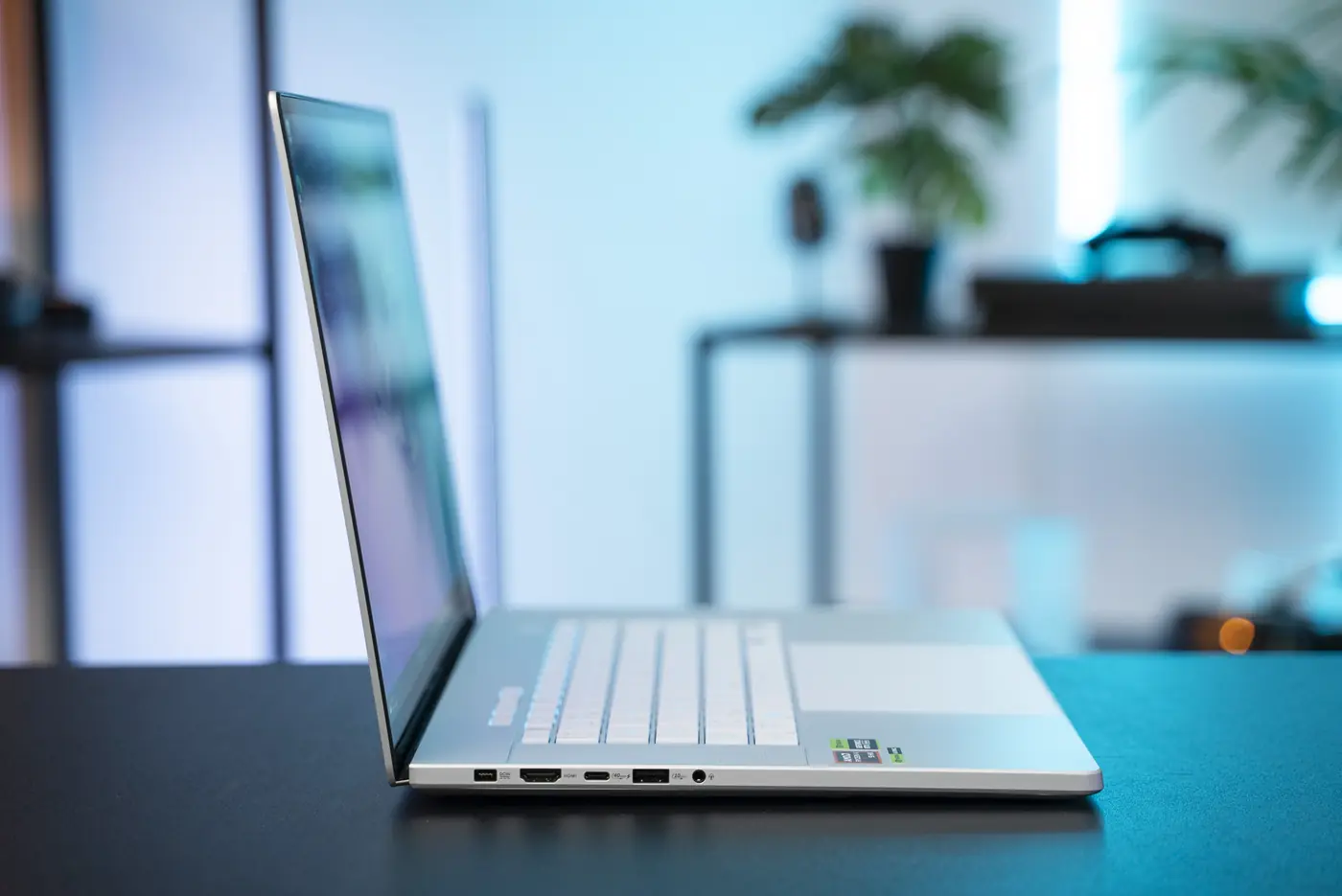 ROG Zephyrus G16 má tenké a ľahké šasi – vzhľadom na výkon, ktorý ponúka. Jeho hrúbka je iba 17 mm, hmotnosť je 1,85 kg. Z hľadiska pomeru kompaktnosť šasi/výkon ide o jeden z najatraktívnejších Windows notebookov na trhu so 16-palcovým displejom.