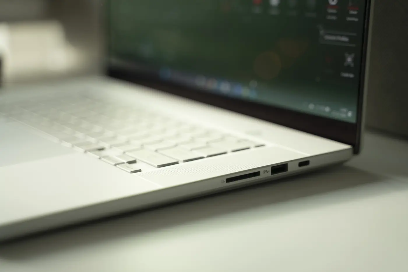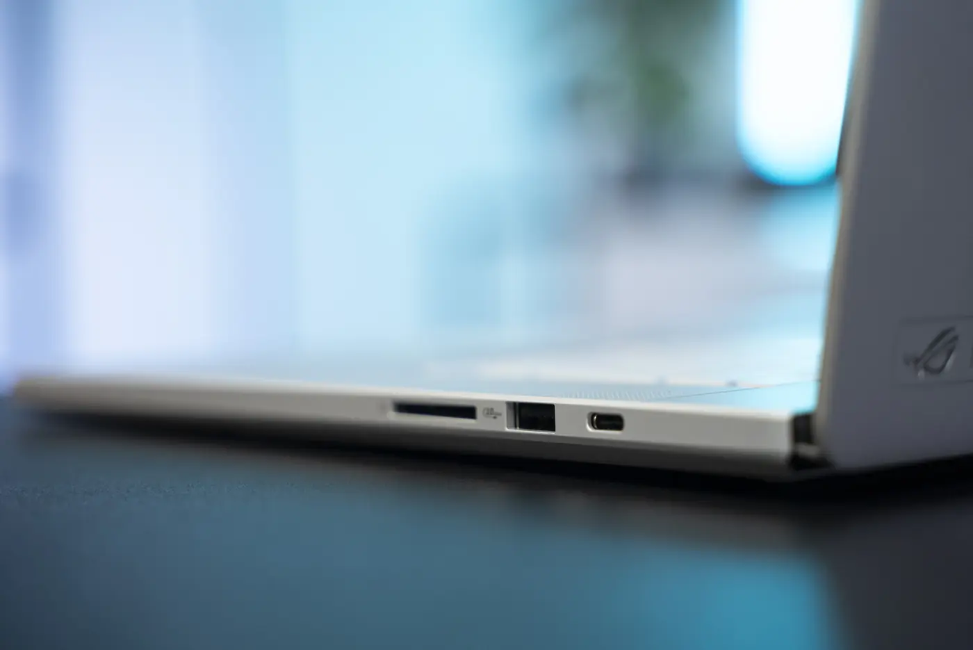 ROG Zephyrus G16 má vo výbave dva USB-C porty (jeden je USB 4.0), dva štandardné USB 3.2 Gen2 porty, HDMI 2.1 výstup, 3,5 mm jack a čítačku štandardných SD kariet. Notebook obsahuje vlastný napájací port a podporuje nabíjanie cez USB-C. Priložená 200 W nabíjačka nabije jeho 90 Wh batériu za vyše hodinu. Nechýba podpora nabíjania cez USB-C. K dispozícii je tiež Wi-Fi 7, Bluetooth 5.4.