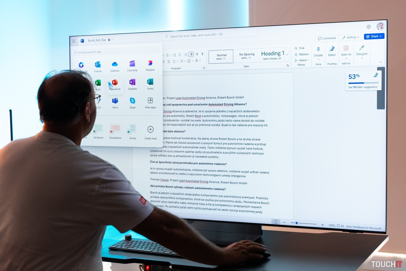 Rovnako sa dá prepojiť televízor so systémom Microsoft Office a potom využívať televízor ako váš počítač. Dokumenty máte dostupné cez OneDrive, k televízoru môžete pripojiť myš a klávesnicu a naozaj pracovať „vo veľkom“.