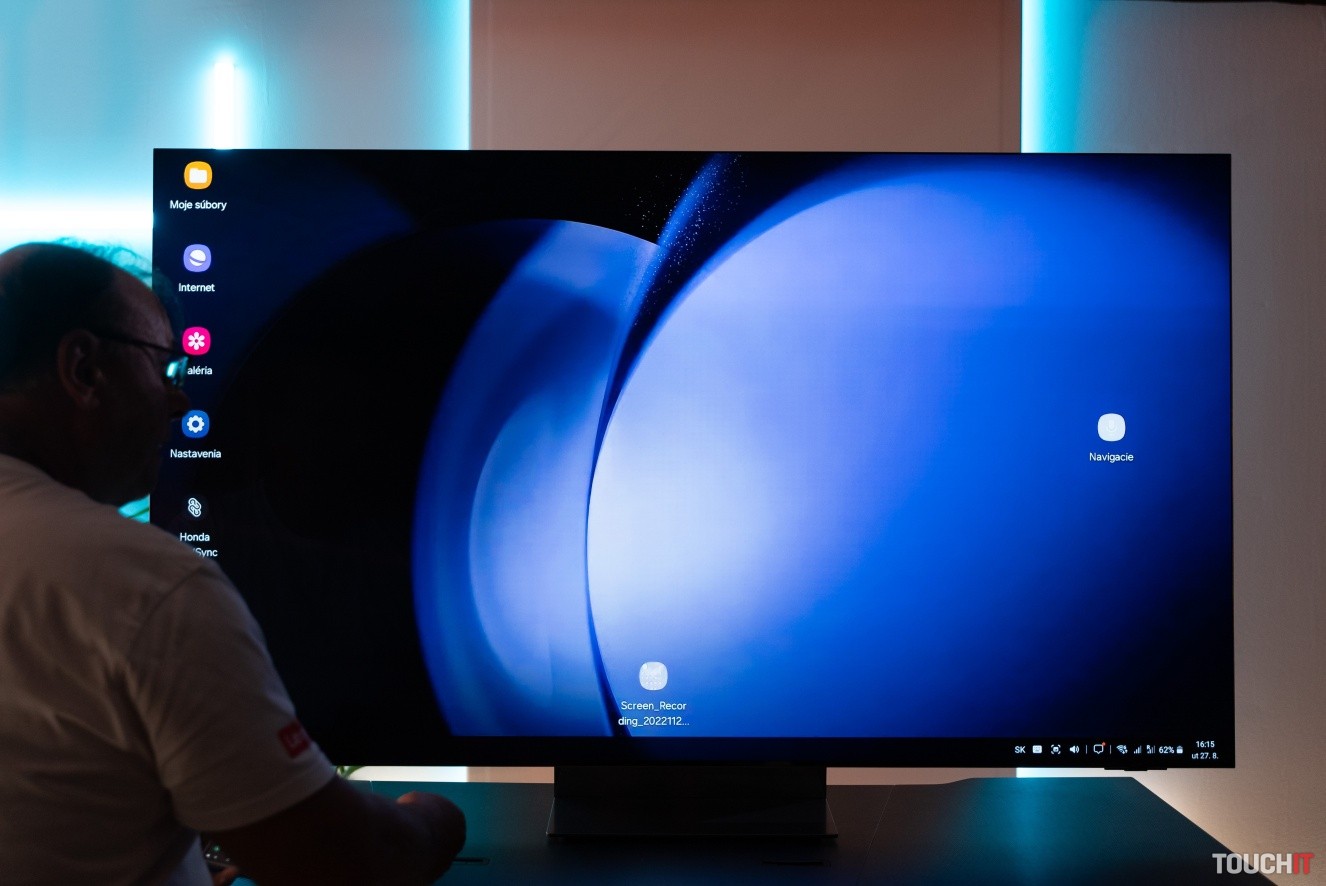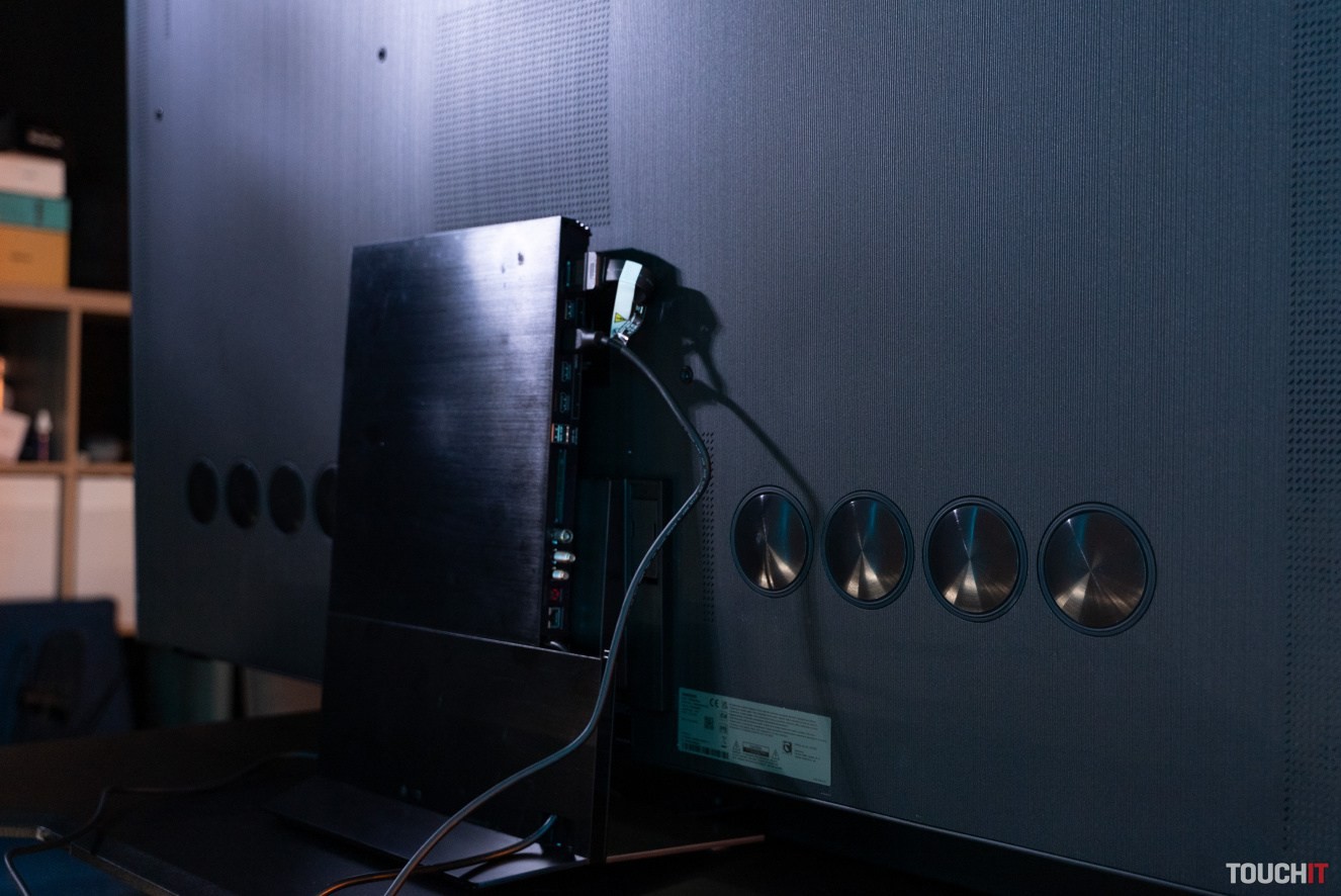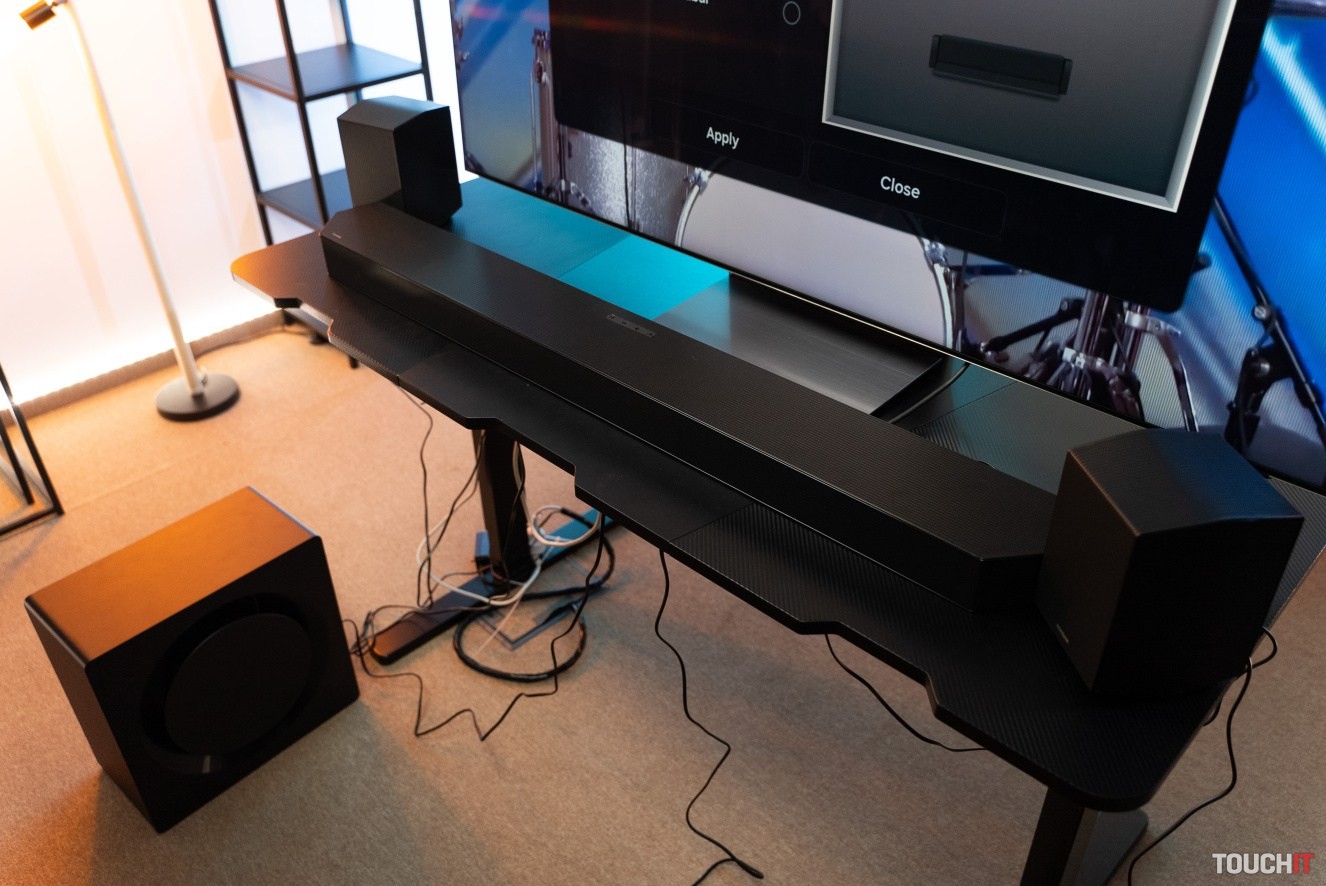 Spomínali sme 8 reproduktorov v zadnej časti, navyše sú tu ale aj reproduktory v hornej časti displeja a práve takto vzniká priestorové podanie zvuku. Hrá to dobre, ale na test sme mali aj soundbar systém od Samsungu, a to je celkom iná dimenzia zvuku. Recenziu tohto systému s označením HW-Q990 prinesieme čoskoro.
