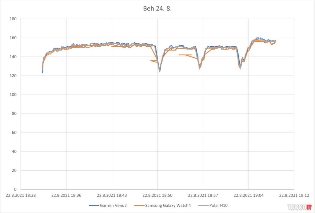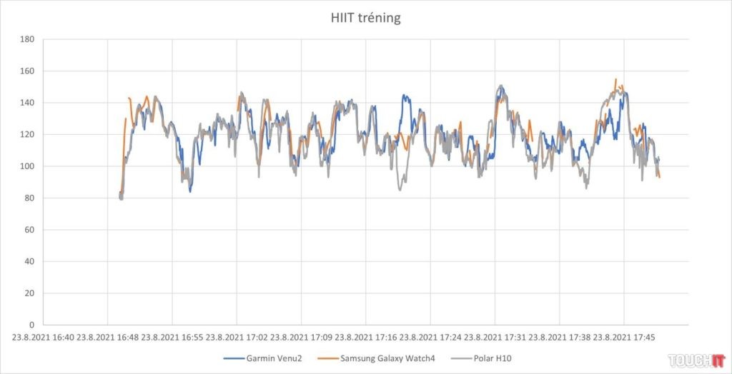 Rovnako je tomu aj v prípade HIIT cvičenia – v tomto prípade síce mali Galaxy Watch4 v niektorých situáciách drobné problémy, avšak rovnako je tomu aj v prípade ostatných inteligentných hodiniek.