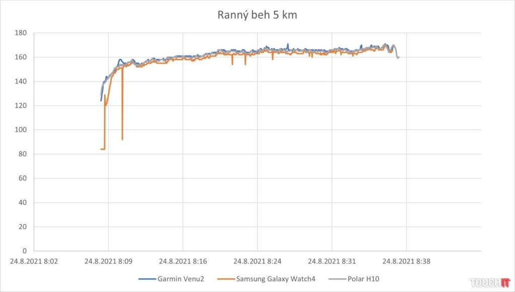 Samsung Galaxy Watch4 vs. Garmin Venu2 vs. hrudný pás Polar H10 – presnosť merania tepu: