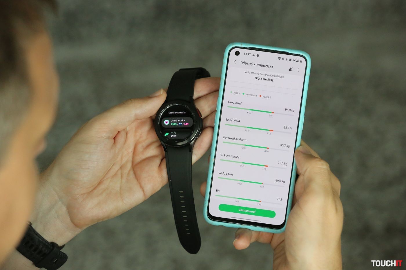 Presnosť merania neviem posúdiť, nakoľko som nemal k dispozícii medicínske zariadenie, s ktorým by som výsledky porovnal. Táto funkcia však môže byť prínosom pre používateľov, ktorí nemajú doma inteligentnú váhu – hmotnosť si zmerajú pomocou tradičnej váhy, tento údaj zadajú do hodiniek a tie následne zanalyzujú telesnú kompozíciu. Všetky dáta sa následne uložia do mobilnej aplikácie Samsung Health.