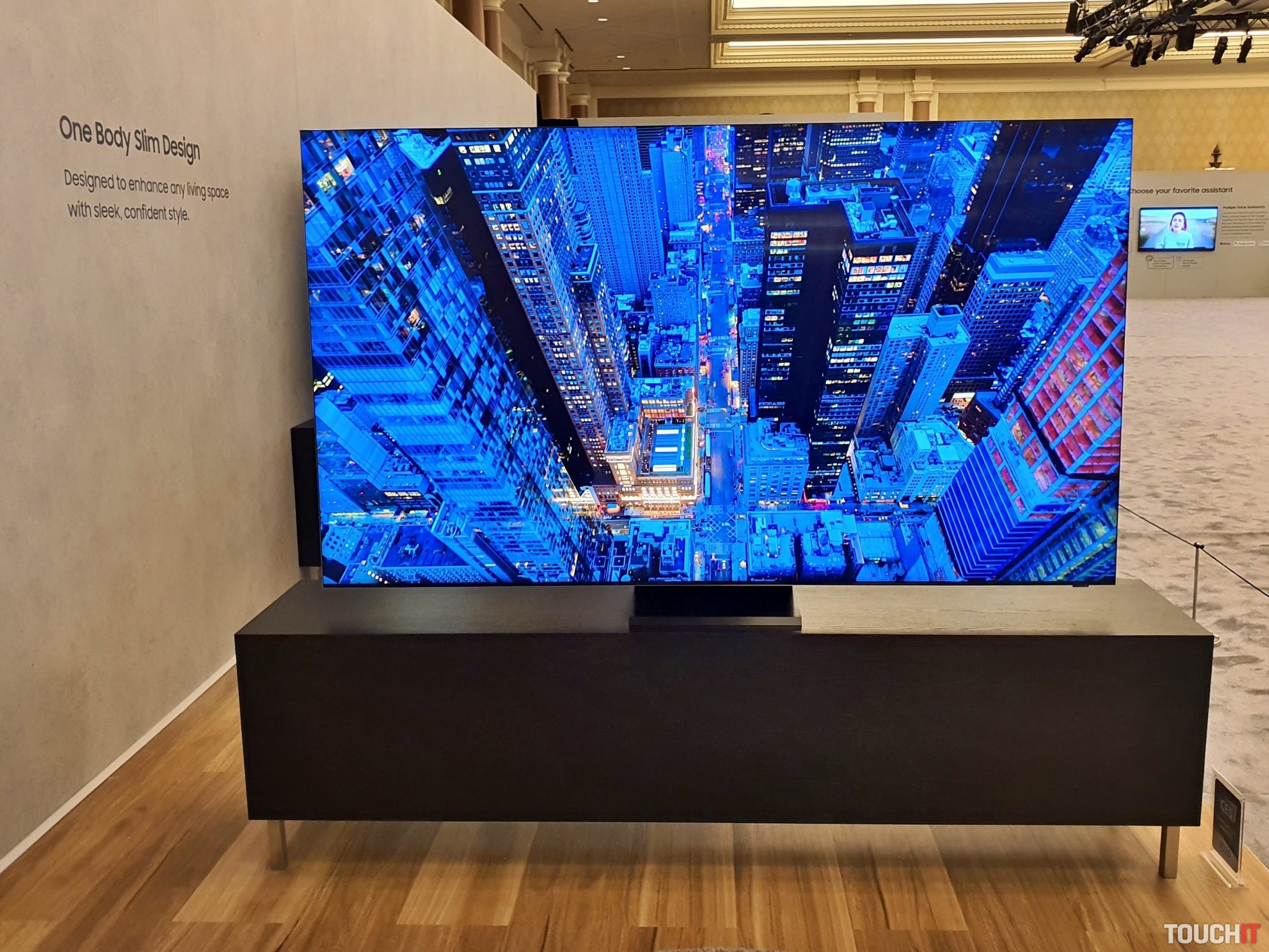 Hlavná pozornosť ale bola sústredená na 8K televízor, modelový rok 2020. Ten má mimoriadne tenký rámček, výborné zvukové vlastnosti, v podstate je v tomto televízore zabudovaný soundbar. Použitá je tu vylepšená QLED technológia, televízor výborne zobrazuje čiernu farbu a ohromujúce je farebné spektrum. V USA má Samsung v oblasti televízie spoluprácu s viacerými poskytovateľmi služieb typu video na vyžiadanie. Zo slovenského pohľadu je podstatné, že pokračuje spolupráca s Netflixom.