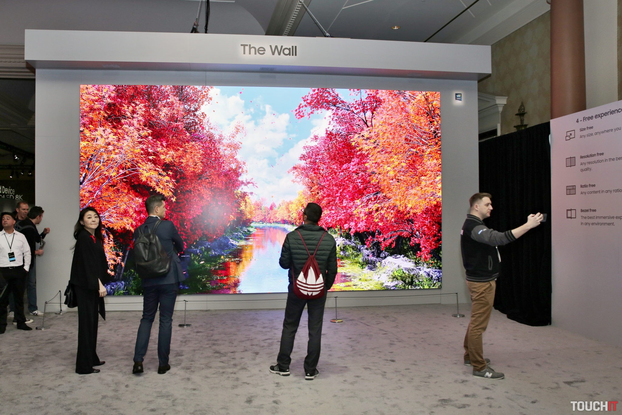 Ešte zaujímavejší bol Smart TV Samsung s označením The Wall s technológiou MicroLED. Tento bol síce predstavený už pred rokom, ale teraz bolo možné vidieť jeho vlastnosti naplno. Nás zaujal hlavne jeho modulárny spôsob. Tento televízor si naozaj prispôsobíte konkrétnemu priestoru, kde sa má prezentovať obraz. Použitá technológia nemá problém ani so statickým zobrazením obrazu. Jeho displej pritom vôbec nemusí mať obdĺžnikový tvar. Zároveň prakticky neexistuje obmedzenie na veľkosť uhlopriečky. Vo videu uvidíte model, ktorý má uhlopriečku cez 10 metrov.