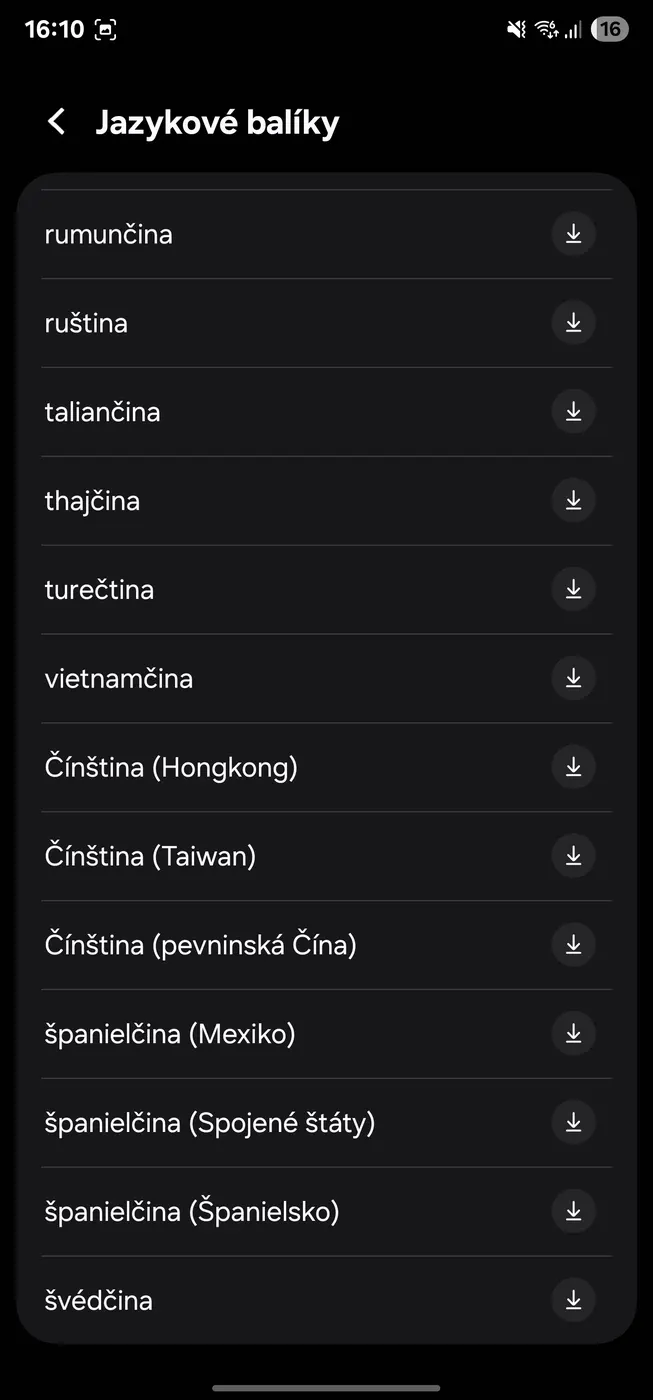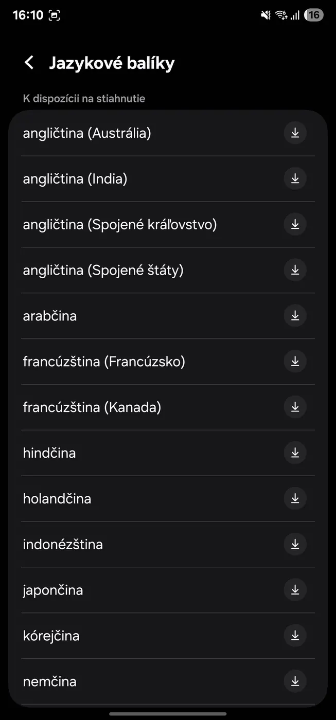 Funkciu Prevod hlasu na titulky sa nám podarilo nainštalovať na Galaxy S23 Ultra s One UI 7, avšak v zozname podporovaných jazykov chýbala slovenčina, prípadne čeština.