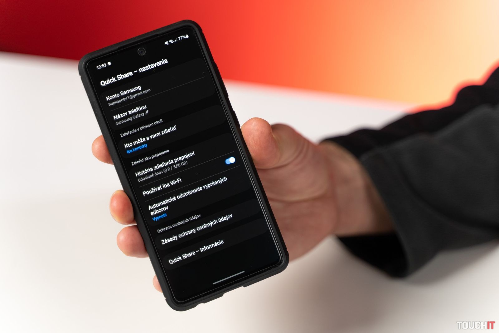 Pred prvým nastavením služby Quick Share je potrebné v nastaveniach vykonať niekoľko kontrol, aby ste ju mohli začať plnohodnotne využívať. Ak nemôžete svoje zariadenie nájsť, uistite sa, že ste povolili viditeľnosť telefónu alebo tabletu. Ak chcete toto nastavenie povoliť, prejdite do Nastavenia > Pripojenie > zapnite Viditeľnosť telefónu. Súbory môžete zdieľať až s 5 zariadeniami naraz