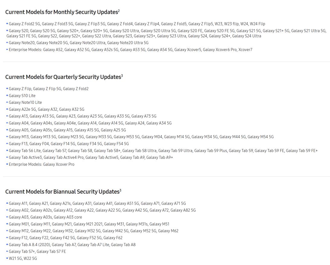 Web samsungmobile.com ponúka prehľadný a pravidelne aktualizovaný zoznam Samsung zariadení, ktoré dostávajú mesačné, štvrťročné alebo polročné bezpečnostné aktualizácie. Na webe si môžete skontrolovať stav podpory nielen pre smartfóny a tablety, ale aj pre smart hodinky Galaxy Watch.