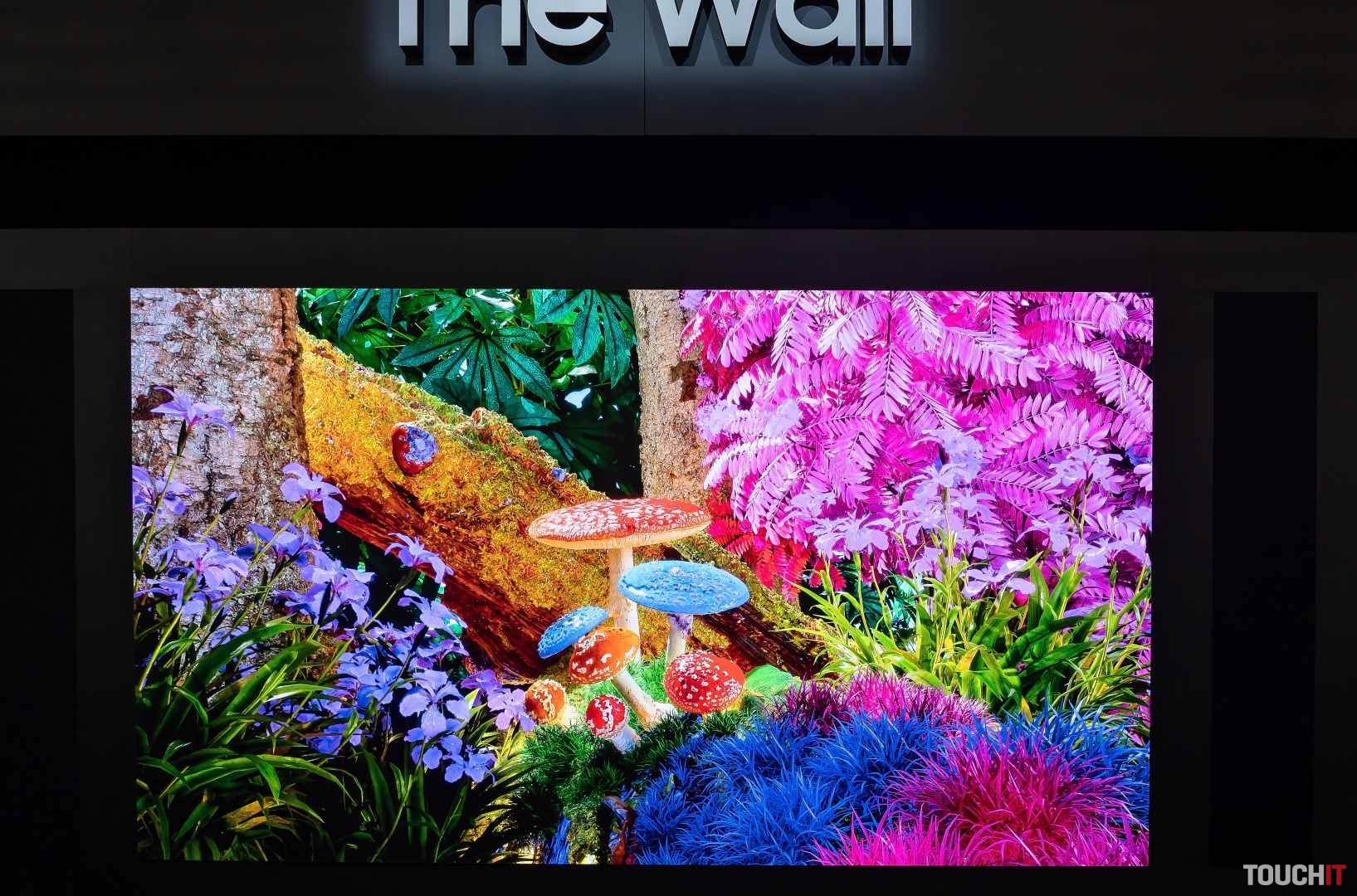Samsung Electronics predvádzal predovšetkým budúcnosť technológie Micro LED. Videli sme tri nové rôzne modely The Wall. Priamo pri vstupe do výstavného stánku bol panel s uhlopriečkou 220 palcov a rozlíšením 8K. Tento displej bol zložený z 55-palcových modulov (kabinetov).