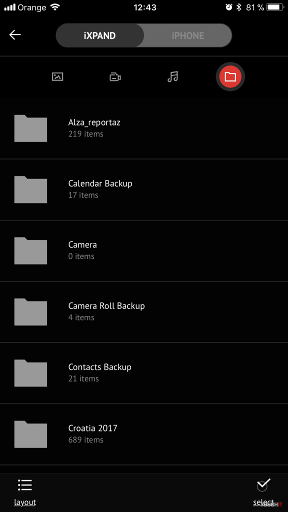 Na úvodnej obrazovke je vždy zobrazený stav pamäte vášho zariadenia a iXpandu. Viete tak, koľko máte na ktorom zariadení miesta a kedy je čas presunúť napr. staršie súbory z iXpandu do počítača, resp. na väčší externý disk.