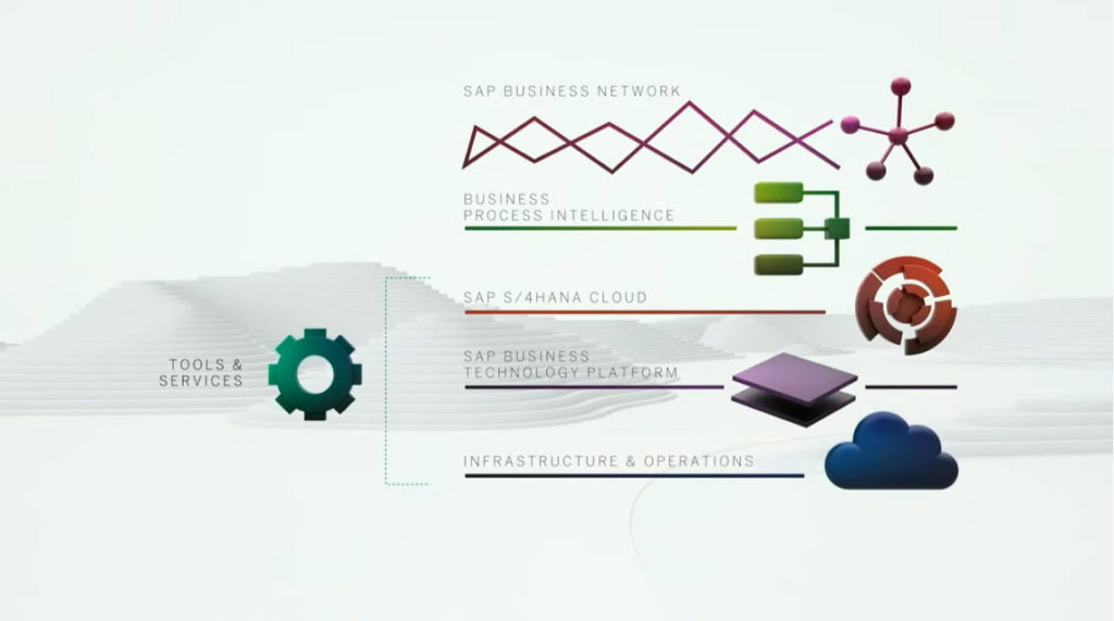 - SAP Business Technology Platform vytvorí jednu sémantickú vrstvu naprieč celým podnikom a poskytuje tak tzv. holistickú biznisovú transformáciu. Znamená to, že rieši všetky procesy v podniku a udrží tzv. čisté jadro.