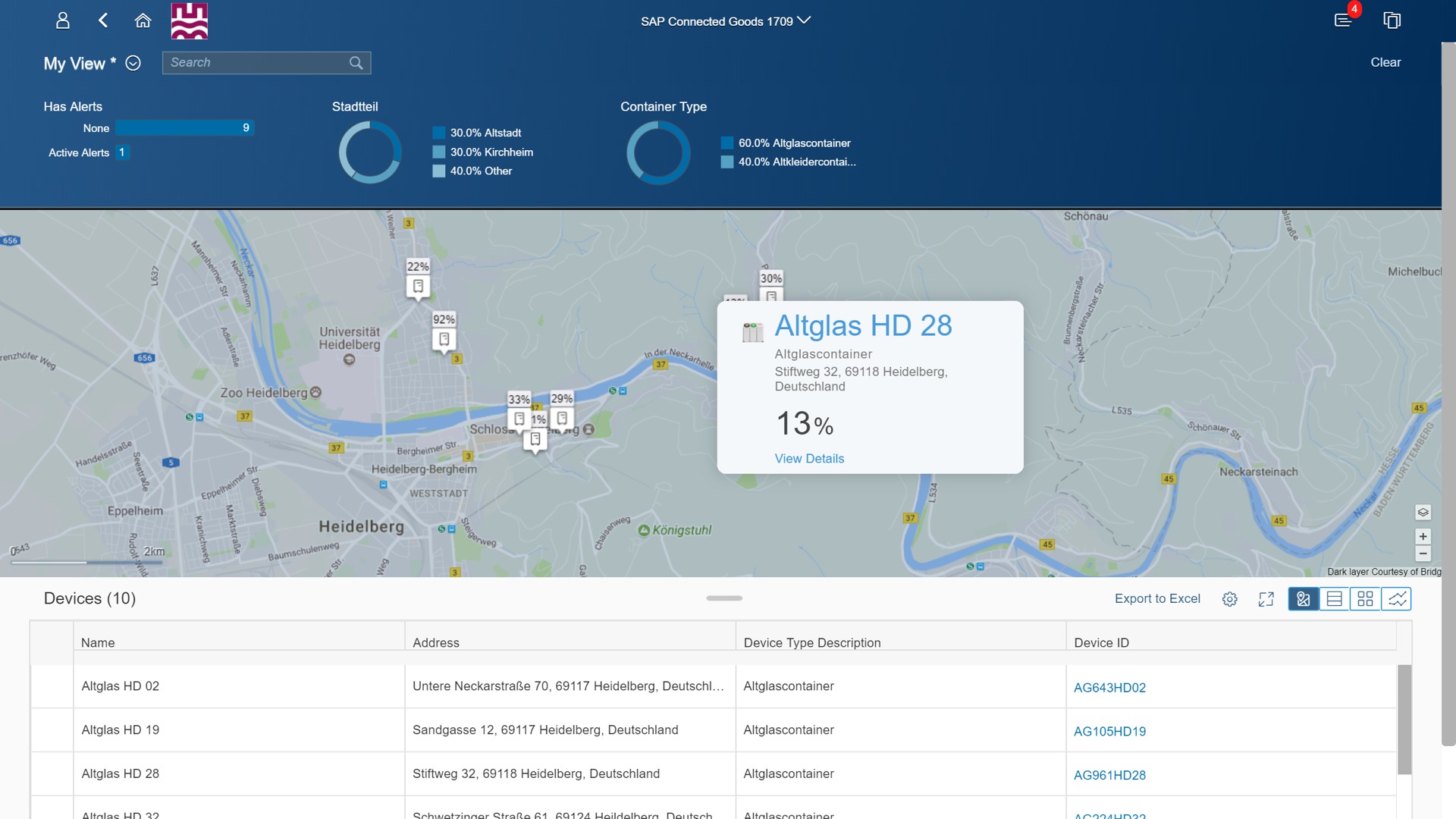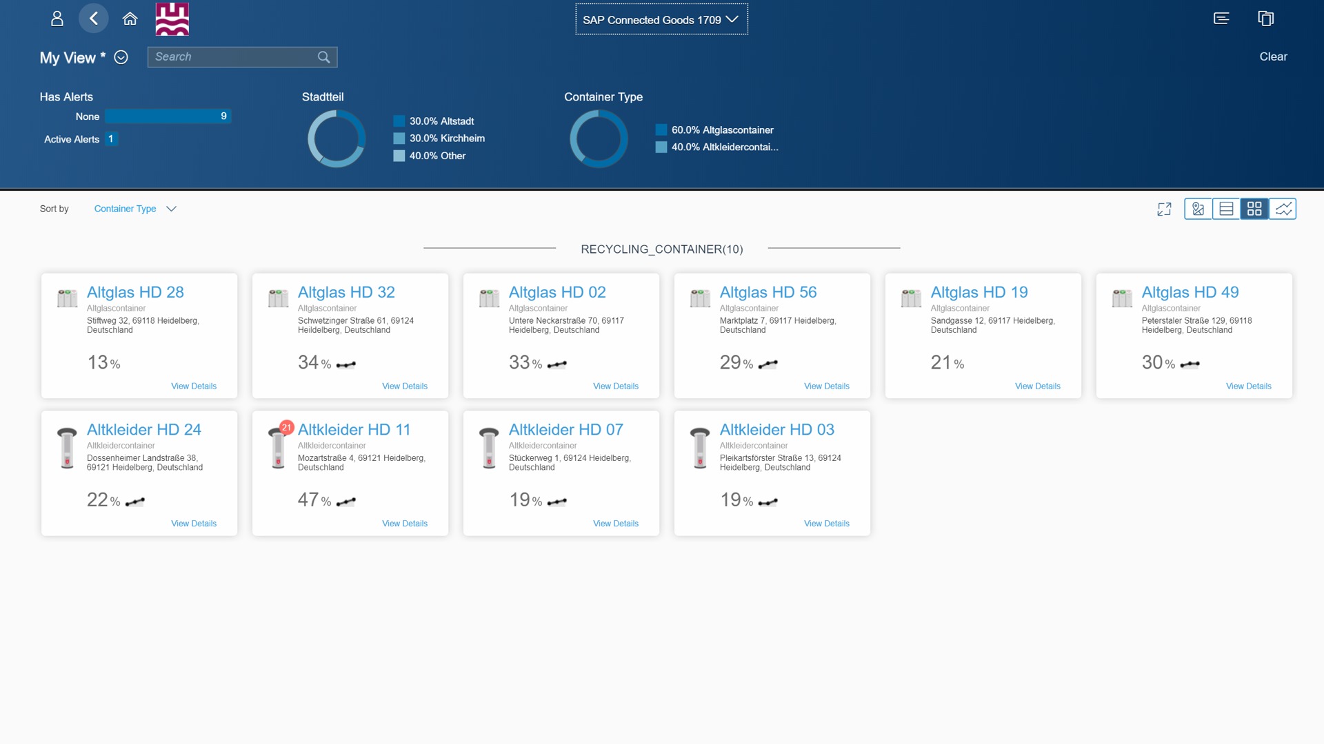 Nemecké mesto Heidelberg napríklad implementovalo s technológiou SAP systém na riadenie recyklácie skleného odpadu. Sieť senzorov v zberných nádobách sleduje nielen váhu, ale aj objem odpadového skla a dokáže tak zefektívniť logistiku jeho zberu. Podľa farby odovzdaných fliaš a frekvencie napĺňania košov navyše samospráva dokáže aj identifikovať, v ktorých častiach mesta môže byť problém s alkoholom a podniknúť proti nemu účinné kroky. Takto vyzerá, keď sa technológia využije až za bežný horizont.