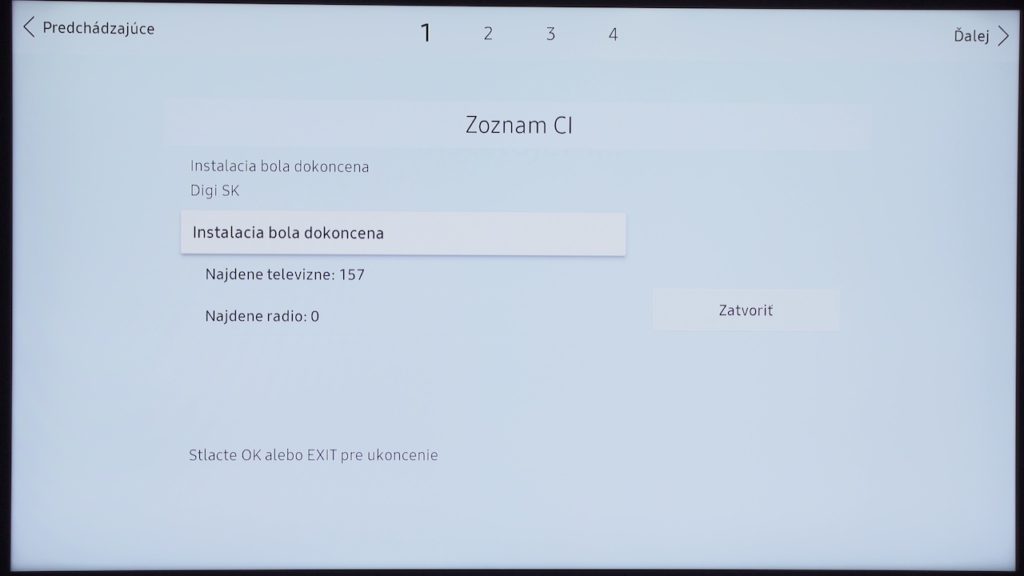 Po úspešnom dokončení inštalácie nechajte na televízore naladený kanál číslo 1 – RTVS Jednotka HD, na ktorom prebehne aktivácia CA modulu.