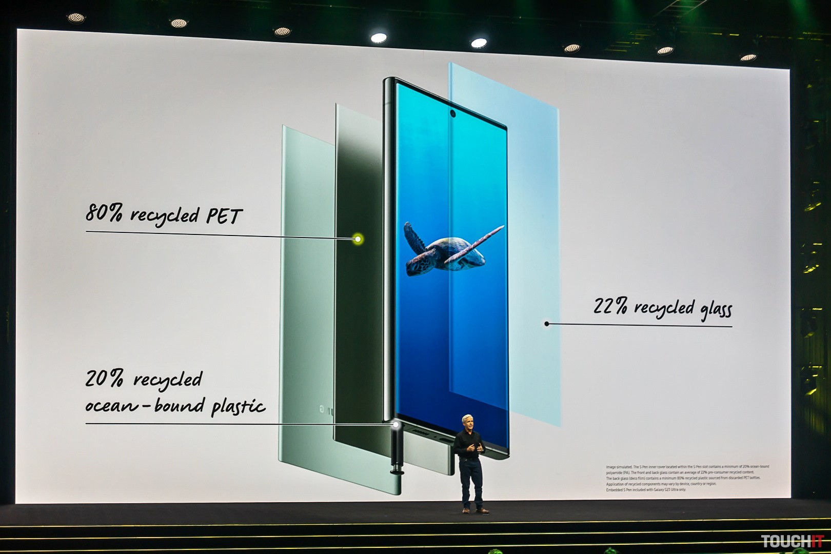 Veľmi dôležitá téma pre Samsung, ale aj celú spoločnosť je trvalá udržateľnosť a dôsledné využitie recyklovaných materiálov. Aj balenie produktov je preto z recyklovaného papiera a aj preto v balení nie sú nabíjačky.
