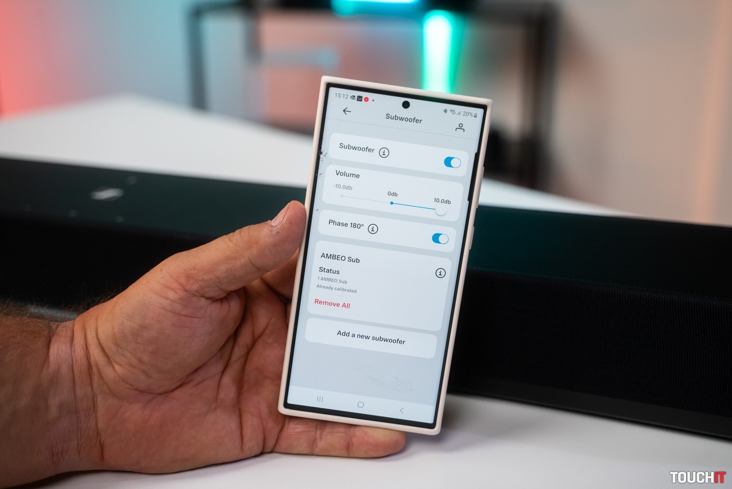 Samostatný soundbar má navyše možnosť pripojenia externého vstupu, čo je úplne netradičné. V mobilnej aplikácii má svoju samostatnú položku a dá sa detailne prispôsobiť.