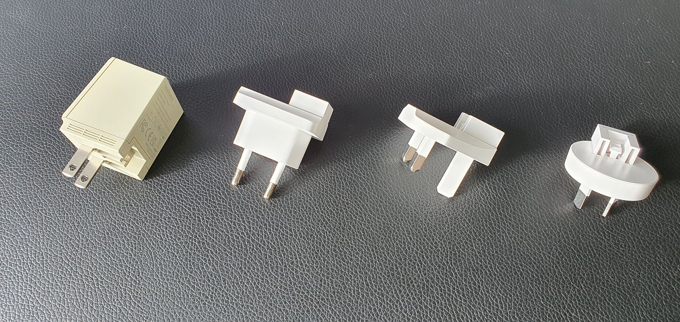 Ten sa síce dá dokúpiť priamo pri kúpe nabíjačky (spolu s ďalšími dvoma adaptérmi pre britskú a austrálsku rozvodnú sieť), avšak jeho veľkosť je zhruba rovnaká ako celej nabíjačky. To je nevýhoda pri prenášaní a navyše je adaptér v bielej farbe a neladí tak so samotnou nabíjačkou. V balení sa nenachádza ani kábel, takže musíte použiť vlastný. Ak je, ako v našom prípade, biely alebo čierny, znova to trochu kazí vizuálny dojem.