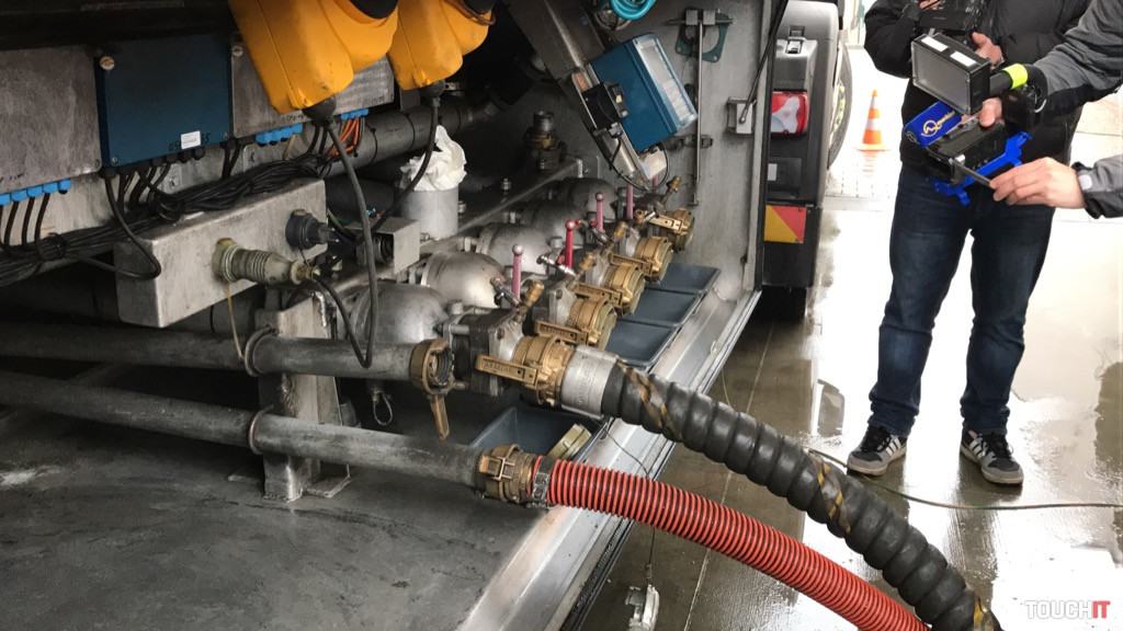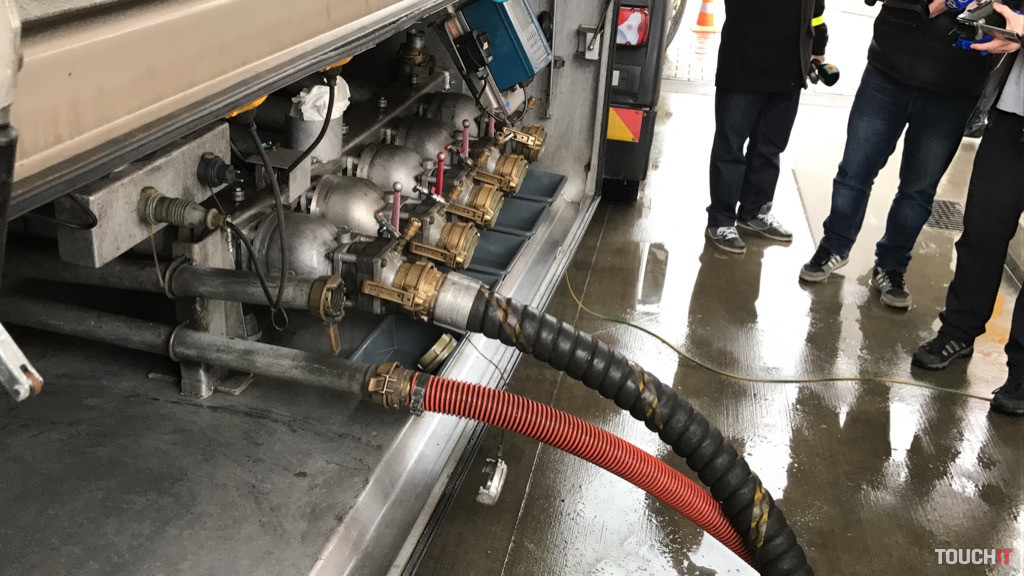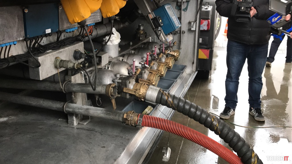 Následne prichádzajú na rad technológie, samozrejme, až po nasadení príslušných hadíc na prečerpanie paliva z cisterny do nádrží. Celý proces prečerpávania je ovládaný cez počítač, ktorý sa nachádza pri výdajných otvoroch cisterny. Počítač, resp. napojený prietokomer je natoľko presný, že prečerpané palivo je zmerané na decilitre. Pochybnosti o tom, že by šofér nevydal toľko paliva ako má, sú bezdôvodné, v dnešnej dobe tu už nejde.