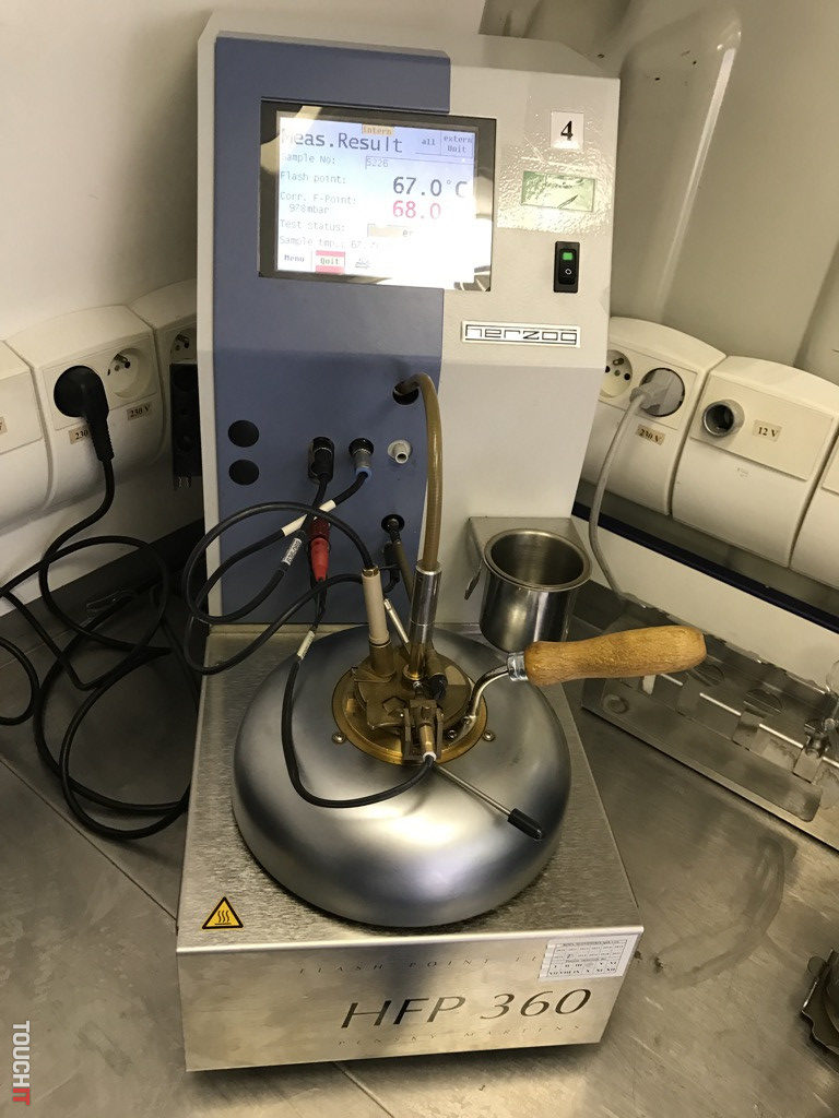 Napokon sme videli aj malú časť zo stroja na filtrovateľnosť motorovej nafty, ktorý sme však fyzicky kvôli jeho vyťaženosti nevideli, nie je možné ho z laboratória zobrať.