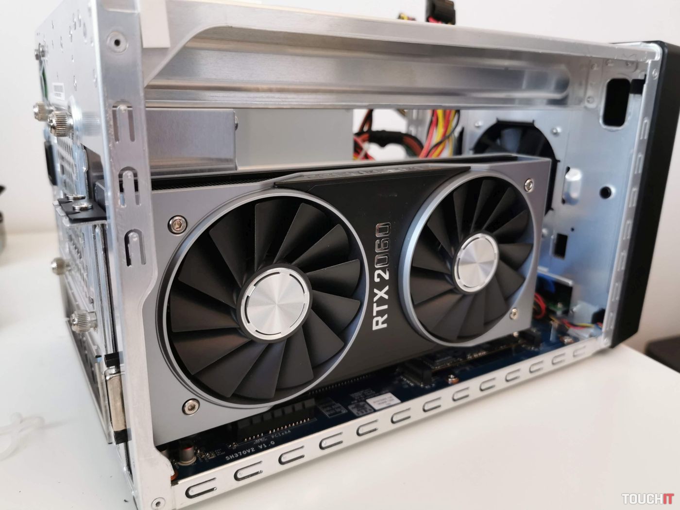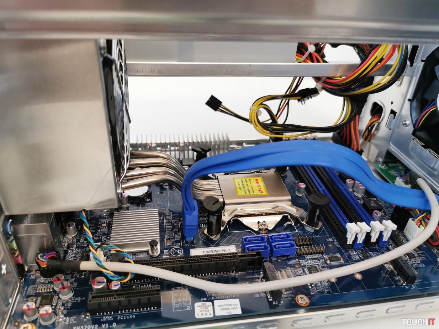 Zabudovaná základná doska tiež obsahuje dva sloty PCIe-x16 a rozmery samotnej skrinky sú navrhnuté tak, aby ste do Shuttle XPC SH370R8 vložili aj grafickú kartu GeForce RTX 2080. K dispozícii sú tiež štyri sloty pre až 64 GB pamäte DDR4 a sloty pre štyri 3,5-palcové disky. My sme v redakcii osadili počítač procesorom Intel Core i5-9400F, grafickou kartou NVIDIA GeForce RTX 2060 a systémovým M.2 2280 NVMe SSD úložiskom.