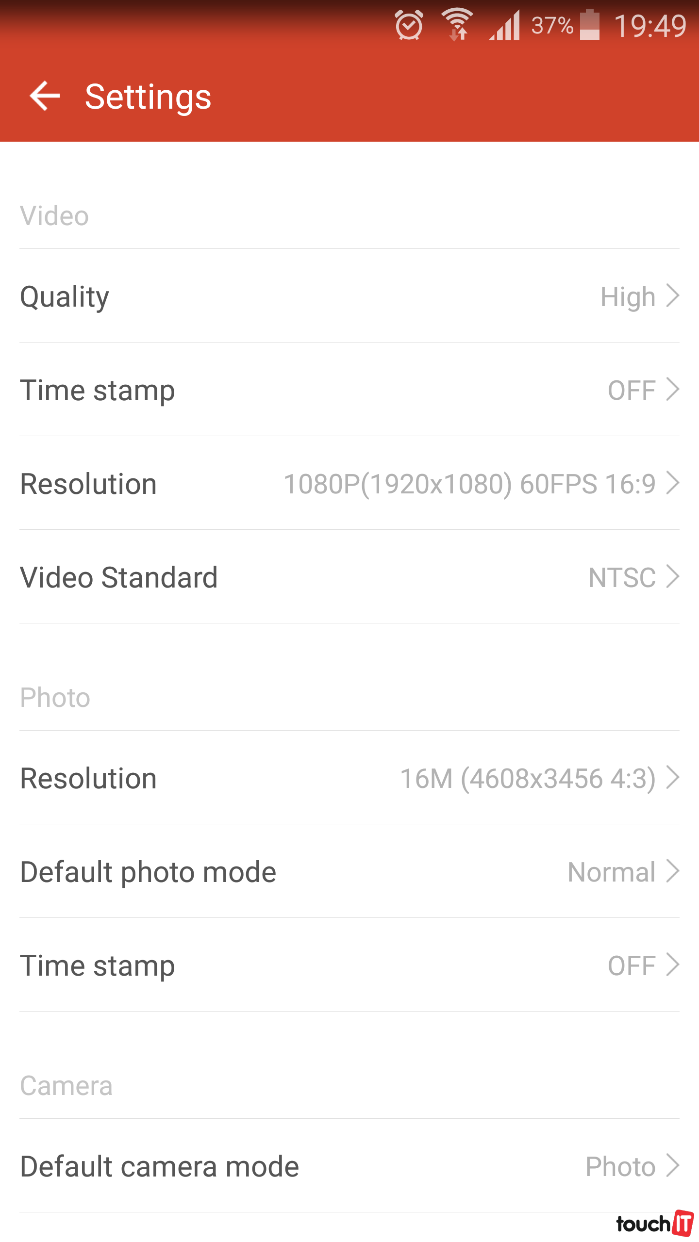 Ponuka fotografovania – klasické fotky, časovač, časozberná fotografia (time-lapse), a sériové snímanie. formát 4:3 = 16/13/8/5 MPx a formát 16:9 = 12MPx. Maximálne rozlíšenie fotografií (4608×3456 px) 16Mpx. Podpora časozberných fotografií (0.5s, 1s, 2s, 5s, 10s, 30s, 60s)