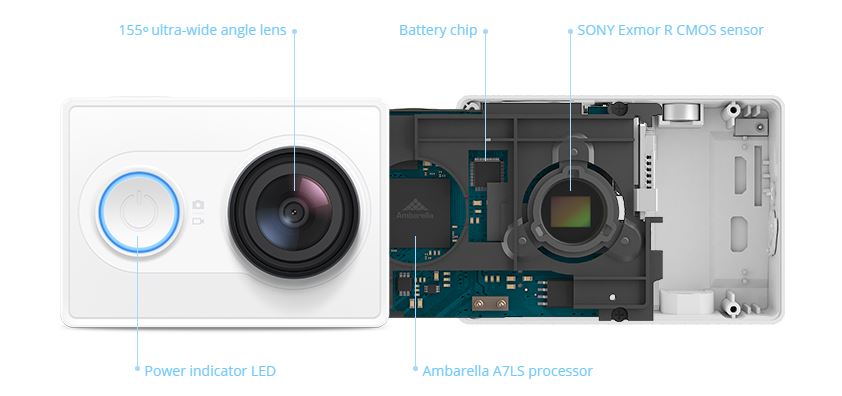 Yi kamera má oproti konkurencii výhodu hlavne v megapixeloch a ponúka rozlíšenie až 16 MPx, pričom väčšina akčných kamier na trhu ponúka okolo 12MPx. Zorné pole kamery je dostatočne široké a využíva HD asferickú čočku s širokouhlým objektívom s pohľadom 155° a ohniskom F/2.8. Procesor kamery je Ambarella A7LS so snímačom obrazu Sony Exmor R CMOS s rozlíšením 16Mpx (4608×3456 px)